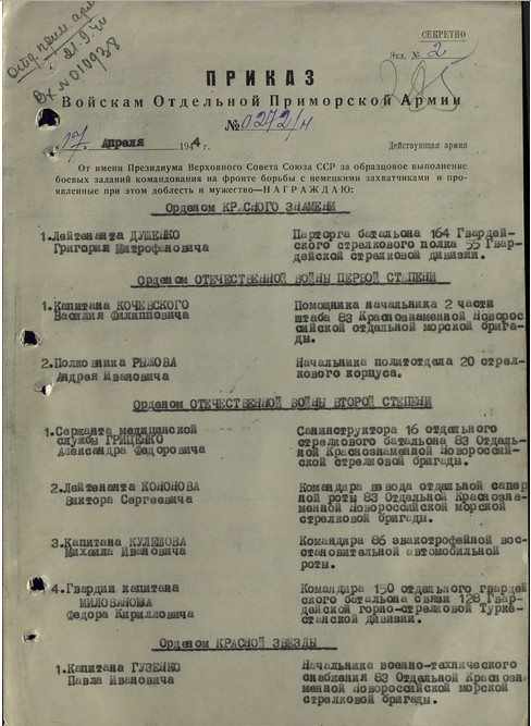 Дословная распечатка наградного листка.