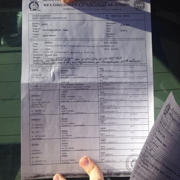 2.2.1 Кличка, номер родословной, фотография родословной с двух сторон.