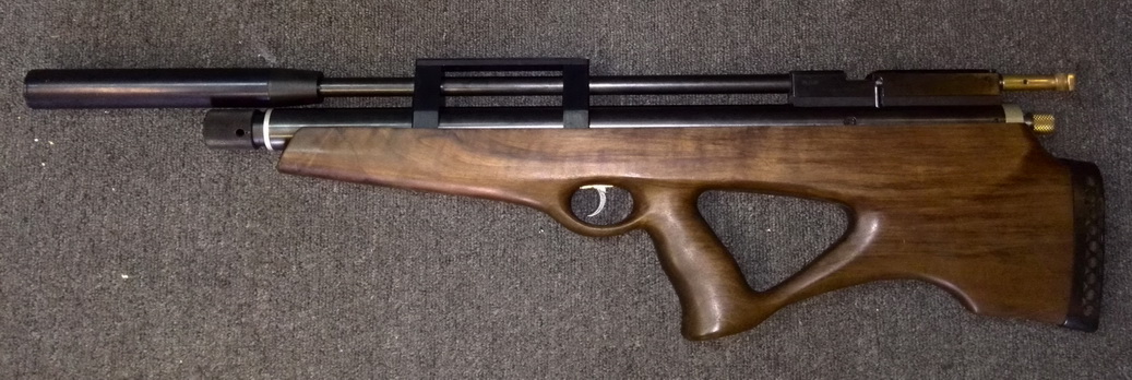 Не смог пройти мимо, смотрю и понимаю что кто-то продолжает заниматься благотворительностью, ибо тут новый модер, дудка, проставка под коробку, передняя пробка с манометром, задняя с клапаном, новый облегченный ударник, переделанна пробка для оперативного поджима, шина, перенос спуска, ложе, отполирован весь механизм спуска. В итоге от бама только труба резервуара(стальная и с огромным запасом прочности) и коробка, причем опять же, отполированная и доведенная. При этом винт имеет закой диапазон регулировок, что и полнотелки сможет запускать не крехтя. Винт идеален для новичков, так как прост и легко поддается тюнингу(в данном случае все уже сделанно) и для охотников, мощи там за глаза, а с редуктором и для спортсменов.