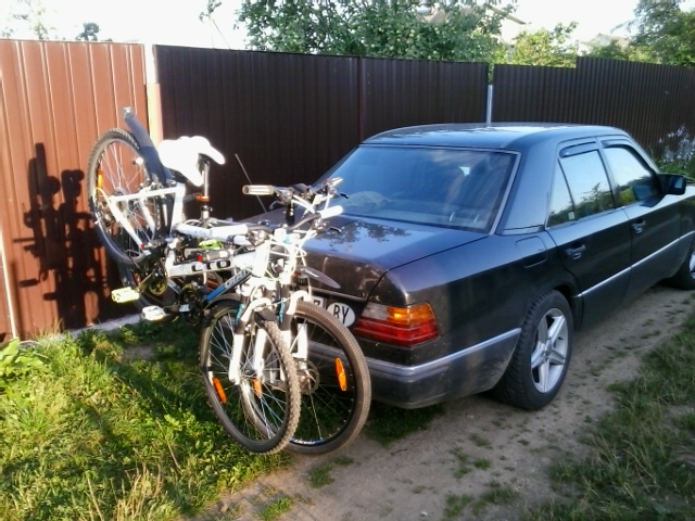 Велик это хорошо - можно поехать, покупаться, пивка попить и приехать на нем обратно, не боясь расстаться с водительским удостоверением или за добавкой съездить. :ya_hoo_oo:. Как говорил один мой знакомый: "Лучше плохо ехать, чем хорошо идти" :-) . Именно с такой целью я последний велик покупал. А еще велобагажник на фаркоп - тема. Тоже если в стремное место нельзя на авто проехать - ГАИ всякие пасутся или дороги нет - поставил машину, сел на велик и поехали + огромный плюс, что ненадо разбирать велик для перевозки и багажник основной свободен. По началу думал - багажник на фаркоп - хлипкая конструкция - всё время ехал и в зеркало заднего вида смотрел не отвалились ли велики, но потом съездил в Березино пару раз - 120 по Могилевке - ничего не отвалилось и камерам скорости задний номер не виден :co_ol: . Главное перед его установкой шарик фаркопа вытереть от смазки и обезжирить растворителем 646-м, чтобы даже ни малейшего намёка на масло не осталось, ну и резко в повороты не закладывать.