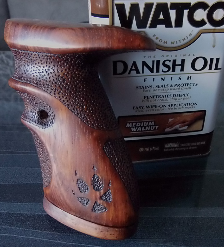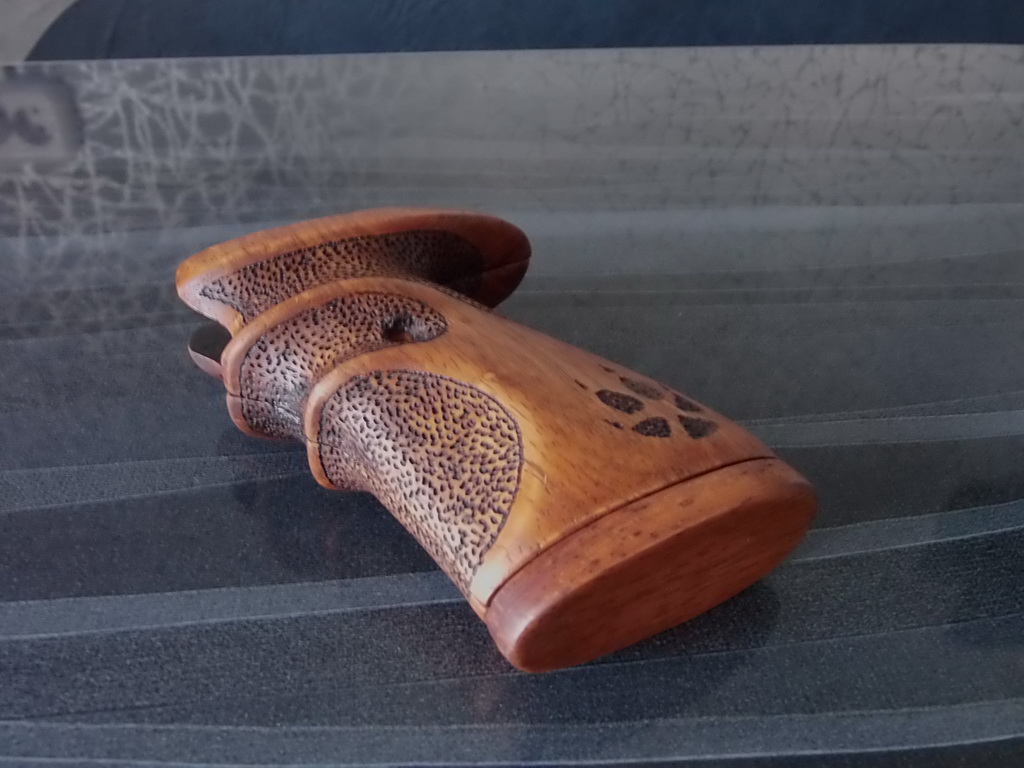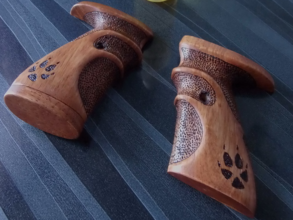 Ну а далее хочу поделиться впечатлениями с первым опытом по пропитке "буратинок" указанными составами.Сделаю это на примере законченной и готовящейся к отправке рукоятки пистолета Кросман 1377.До этого как знаете я красил свои изделия из фанеры краской аэрозольной