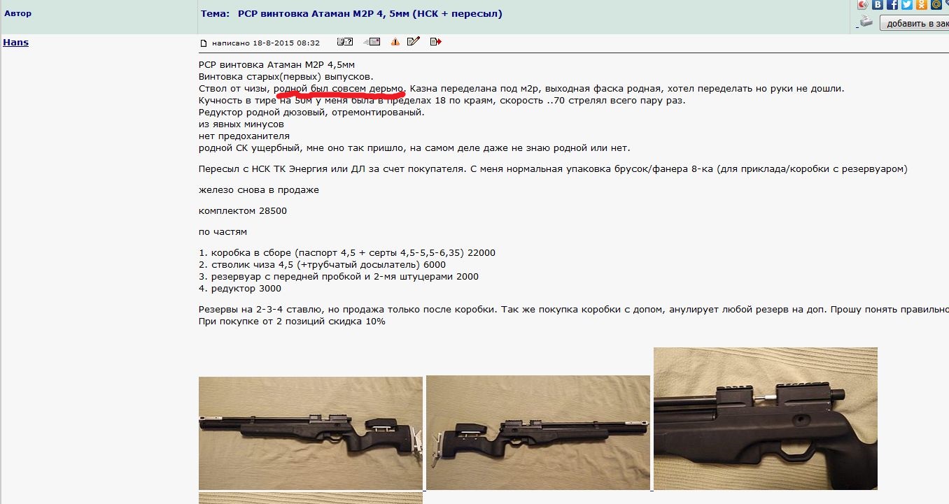 Куплю дудку родную кал. 5.5 на М2Р короткую (420мм) в сборе с модером и фальшстволом, проверенную на кучность.