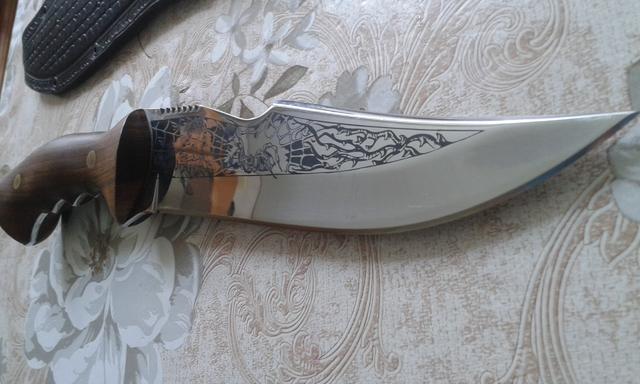 Форма клинка: изогнутая, на вогнутом скосе обуха дополнительная заточка для рубки мелких костей, на части обуха пила.