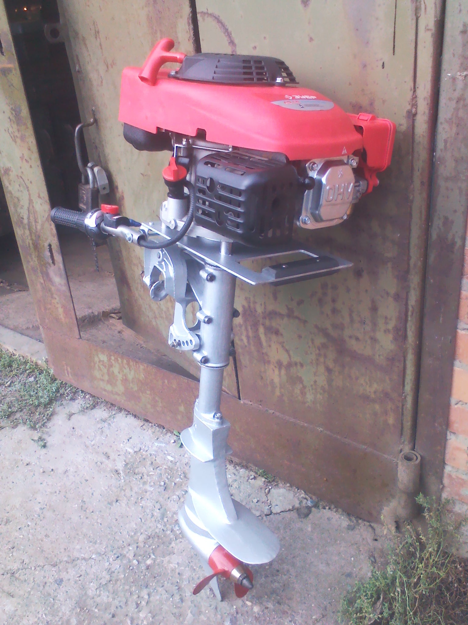 - решил отказаться от сальника, который одевался на свечную головку и не давал вытечь маслу из редуктора при наклонах мотора.