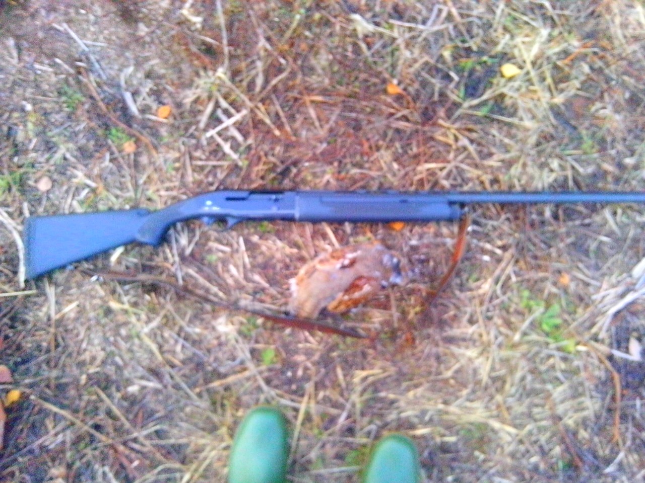 Так как сегодня последний день конкурса.было решено добыть пернатый трофей.скажу сразу он оказался очень трудовым и к тому же первым в своем роде.Встав утром и посмотрев на погоду решил , что при таком морозе в лесу будет сильный шум от листьев, а водоемы во льду.принял решение, что пернатую дичь не добуду и решил поехать на зайчика.взяв собаку и отца с товарищем , мы отправились в лес.Приехав мы увидели потрясающие пейзажи осеннего леса с прекрасной белоснежной травой и листьями от инея.При первых же 100 метрах леса собака подала голос , но это оказались косули, а нам то нужен заяц!!!Собаку бысто перехватили и дальше бороздить просторы леса.В итоге косого мы всетаки подняли, но добыть его так и не удалось, сильно хитрый оказался зараза.Походя по лесу я видел очень много рябчиков,которые взлетали на расстоянии выстрела, но возможности так я и не нашел.Придя к машине и решив пообедать, моя душа не выдержала и я решил всетаки добыть трофей для конкурса.Оставив собу я двинулся в лес.Пройдя примерно около км я уведел взлетевшего рябца и увидел что он пролетел и сел.Я выдвинулся за ним.Ружье на вскидке, предохранитель снят и шаг за шагом совершаю подход к своей цели, сердце кажется, что вычкочит , а пульс разрывает вены)), но этот гад короткими перебежками оказался совсем в другой стороне.От черт, подумал я и здесь не мой день, но не прекратил преследование.Так продолжалось , наверное , раза 4-5 и все время я оказывался в дураках.Решив, что сердце больше не выдержит такой нагрузки , а нервишки еще нужны хорошие для работы и семьи, я принял решение остаться без трофея и отчета.Но душа , то требовала и я решил пойти за ним последний раз.Идя уже без надежды и со спокойным пульсом, я не поверил своим глазам, что он сидит прямо передомной на ветвях ели.Видно уже он тоже устал или решил посмотреть , что за дурачек))) за ним ходит.И тут моя рука не дрогнула и глаз " фальшивый " не закрыл.Сделав выдержаный, спокойный выстрел мой трофей устремился к земле.И тут моей радости не было предела, т.к это первый рябчик за все мои 12 лет охотничей деятельности.Вернувшись к машине мои компаньены уже " замачивали " мой трофей.
