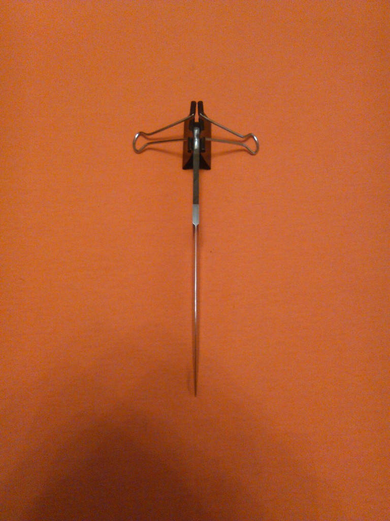 Клинок из стали Р18, 60-61 ед. твёрдости, толщина 3,7мм, ширина 28мм, длина клинка 105мм, хвостовик 60мм. Спуски прямые, подвод тонкий, травление.