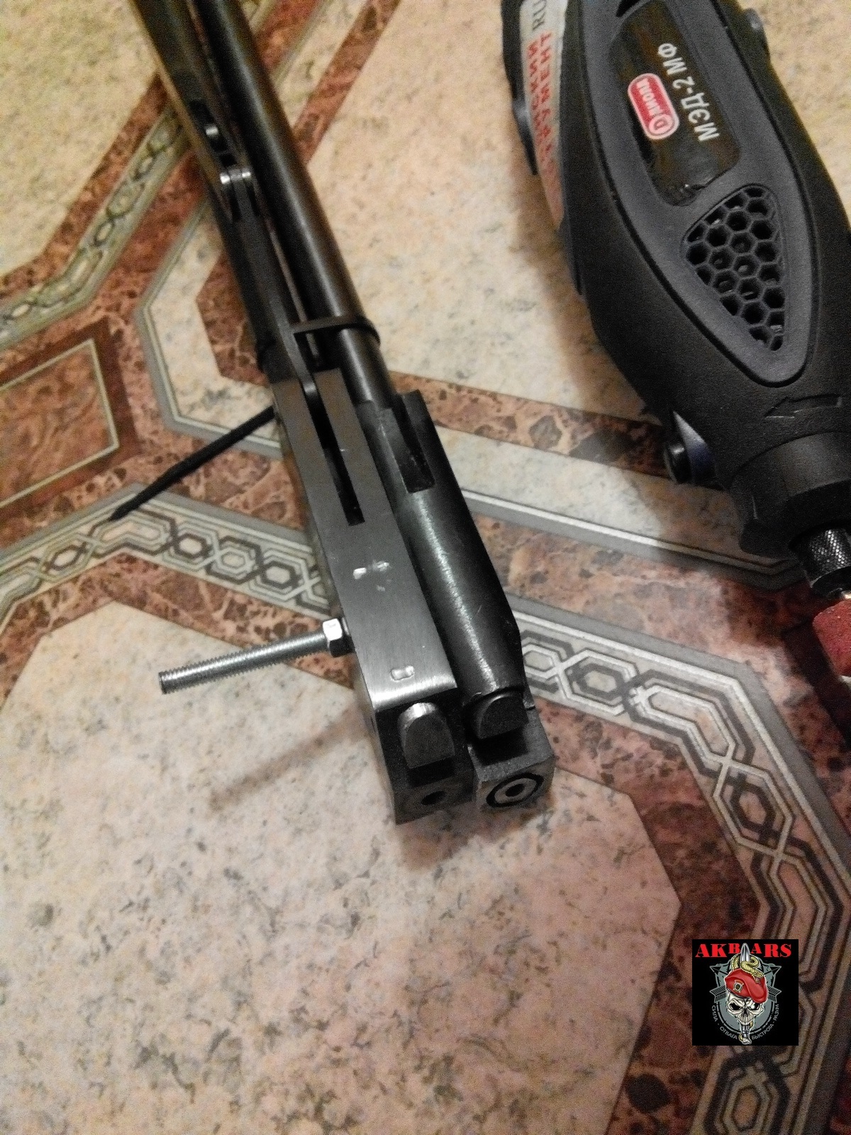 мне там с эксцентриком никак. Эта мурлыка под Мосинку пойдёт и выступающие детали неприемлимы. А вот толщина дудки как раз позволяет отказаться от фальшствола. Вместо маркера при подгонке я корректор использую. А вот насчёт зазора - нету его. Впритирку.