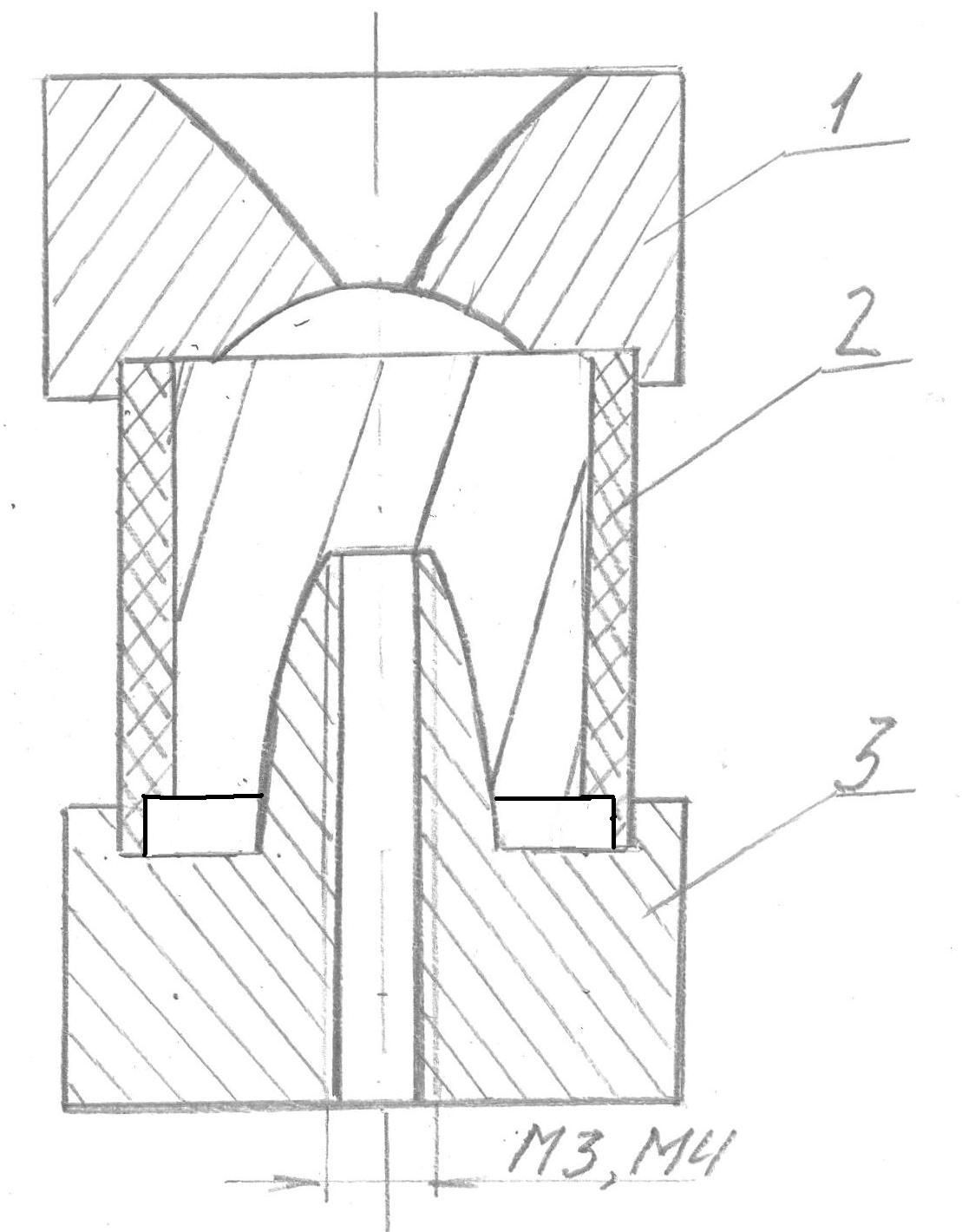 №1 - верхняя крышка с литьевой воронкой и внутренней полусферической выборкой для головы пули.