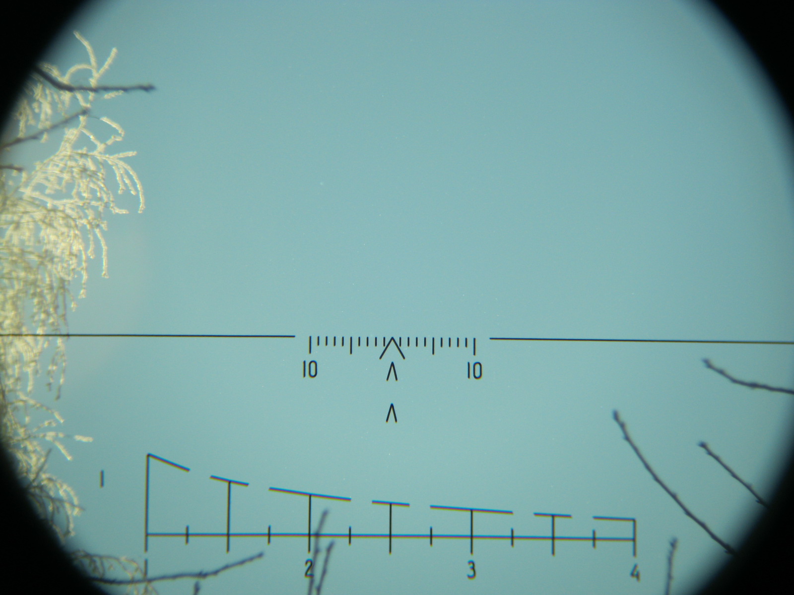 Дальномерка в нём =1. Тоесть если 1метр высота цели, то мерить можно до 400м. а если высота цели 10см, то до 40м. ...а если 20см,то до 80м (нижние цифирки множить Х2 :mi_ga_et: