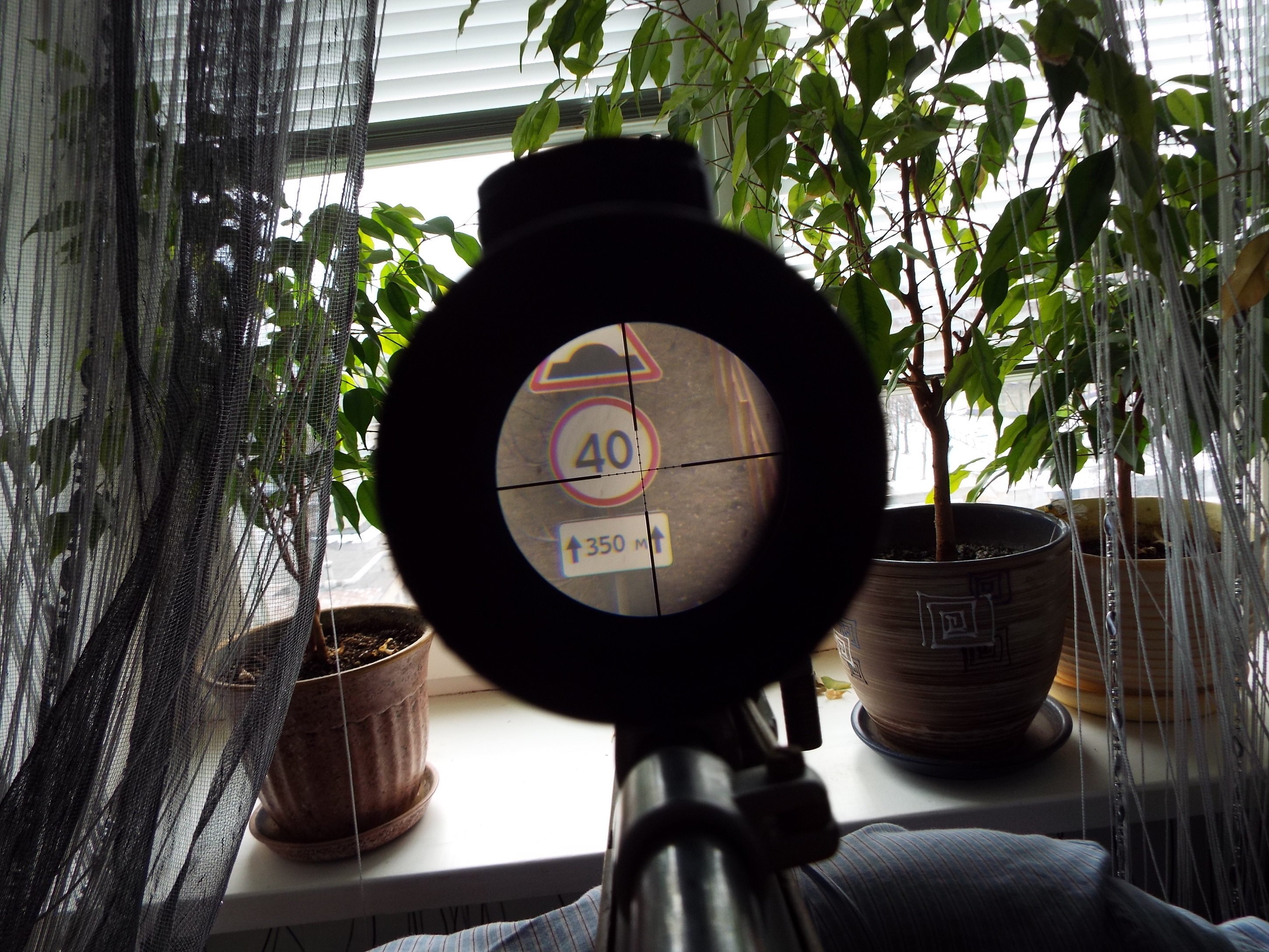 На фото получилось немного размыто и темновато потому что фокус фотика на сетке, на самом деле все очень четко и светло до знака метров 150.