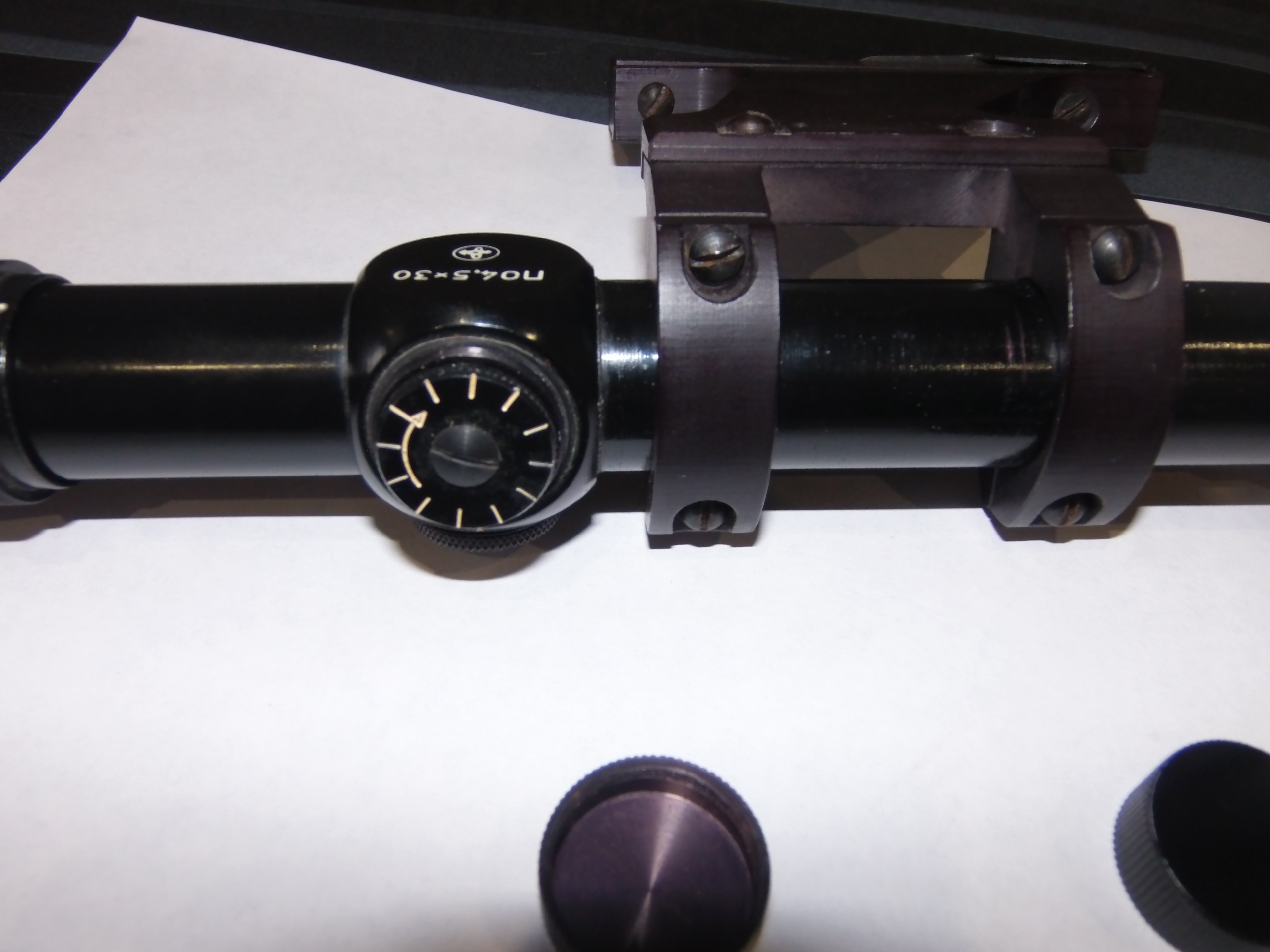 3)Прицел ПО 4,5Х30(отечественный) с боковым кронштейном под планку "Ласточкин хвост"-Б/У в хорошем состоянии