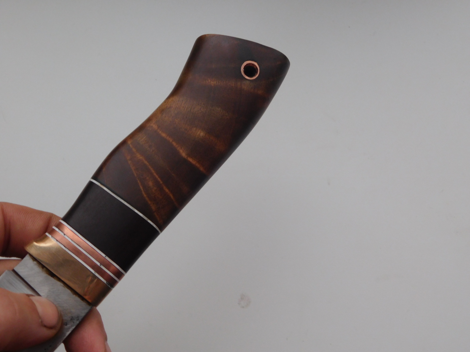рукоять дюраль д16 кожа граб кап клена пропитана данишем длинна 125