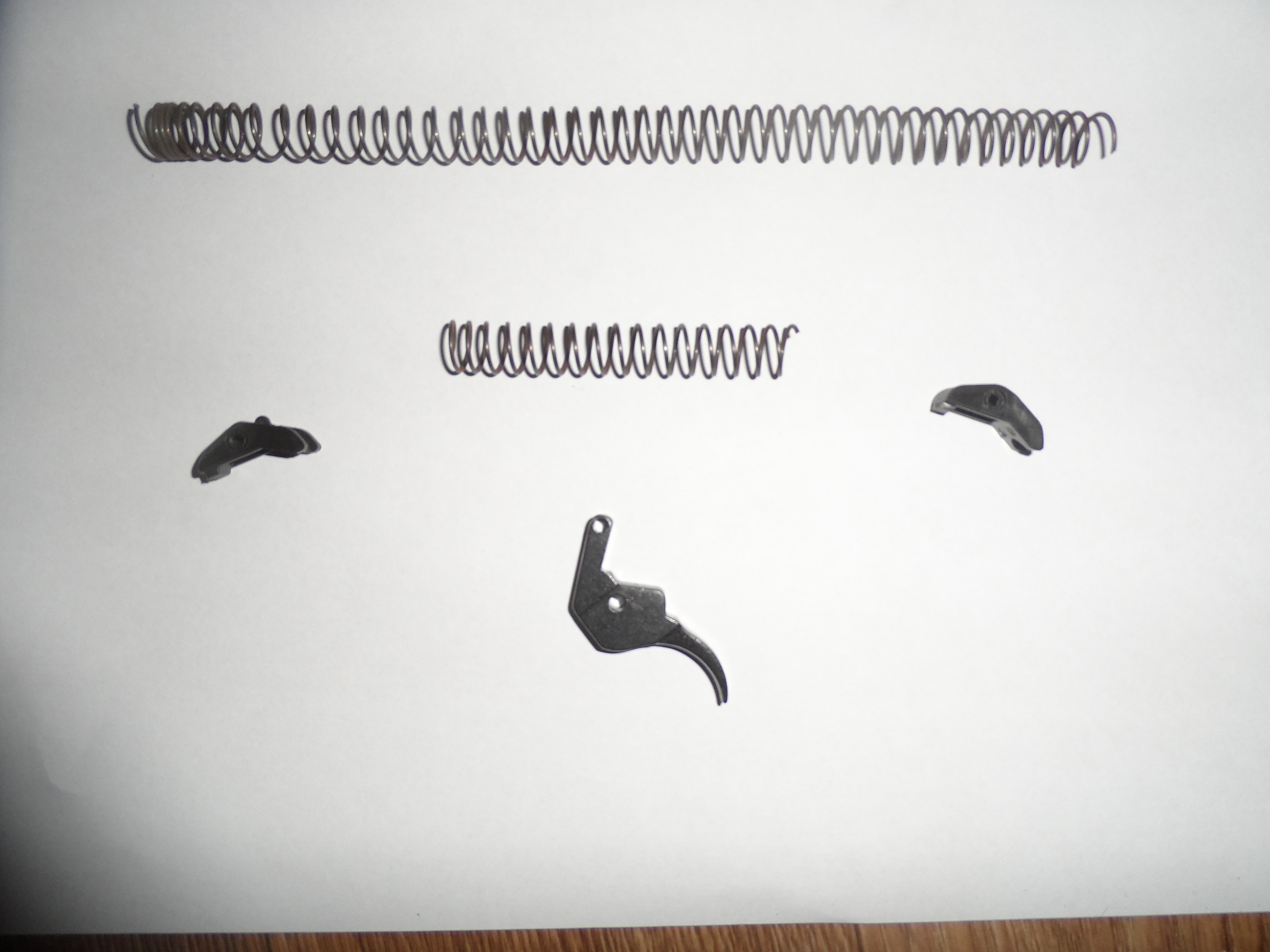 Спусковой крючок, 2 шептала, пару боевых (самодельных, в заводских условиях) пружин. За весь комплект 250 тыс.
