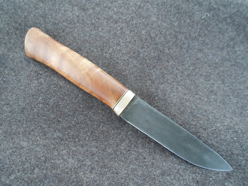 Рукоять: 122х19х27 мм., латунь, сувель берёзы. Пропитка нат. олифой, с последующей закупоркой пор.
