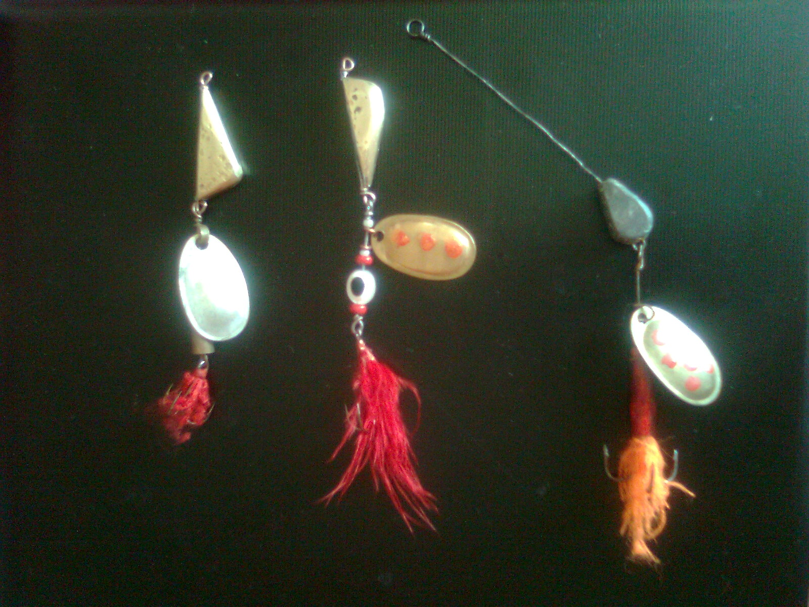 Сергей Вадимович :uch_tiv: , вертушки Ваши - настоящие шедевры :co_ol: ( это не лесть , а неоспоримый факт ) :bra_vo: . НО неужели среди Ваших почитателей нет любителей переднеогруженных вертушек ? :du_ma_et: Ведь этот класс приманок более универсален по-сравнению с классической компоновкой , плюс менее капризен при "заводке" и прощает создателю небольшие технические огрехи :smu:sche_nie: . Когда-то, очень давно, сам относился к переднеогруженным вертушкам с некоторой долей скептитизма и пренебрежения :-( . Но однажды попал мне в руки фирменный МЭПС с передней огрузкой - это была ПЕСНЯ... После него моё мнение о переднеогруженных вертушках кардинально изменилось :ya_hoo_oo:. Были и такие рыбалки где эти вертушки давали практически весь улов :co_ol: . Вот и фото нескольких уже разловленных самоделок. На втором и третьем фото вертушка с быстро-сменными лепестками ( её чертежи были опубликованы в альманахе "Рыболов-спортсмен" ещё в далёкие 60-годы прошлого столетия :st_ruskiy: ). Возможно у кого-нибудь есть интересные модели "переднеогруженных" - поделитесь ... Заранее благодарю :uch_tiv: .