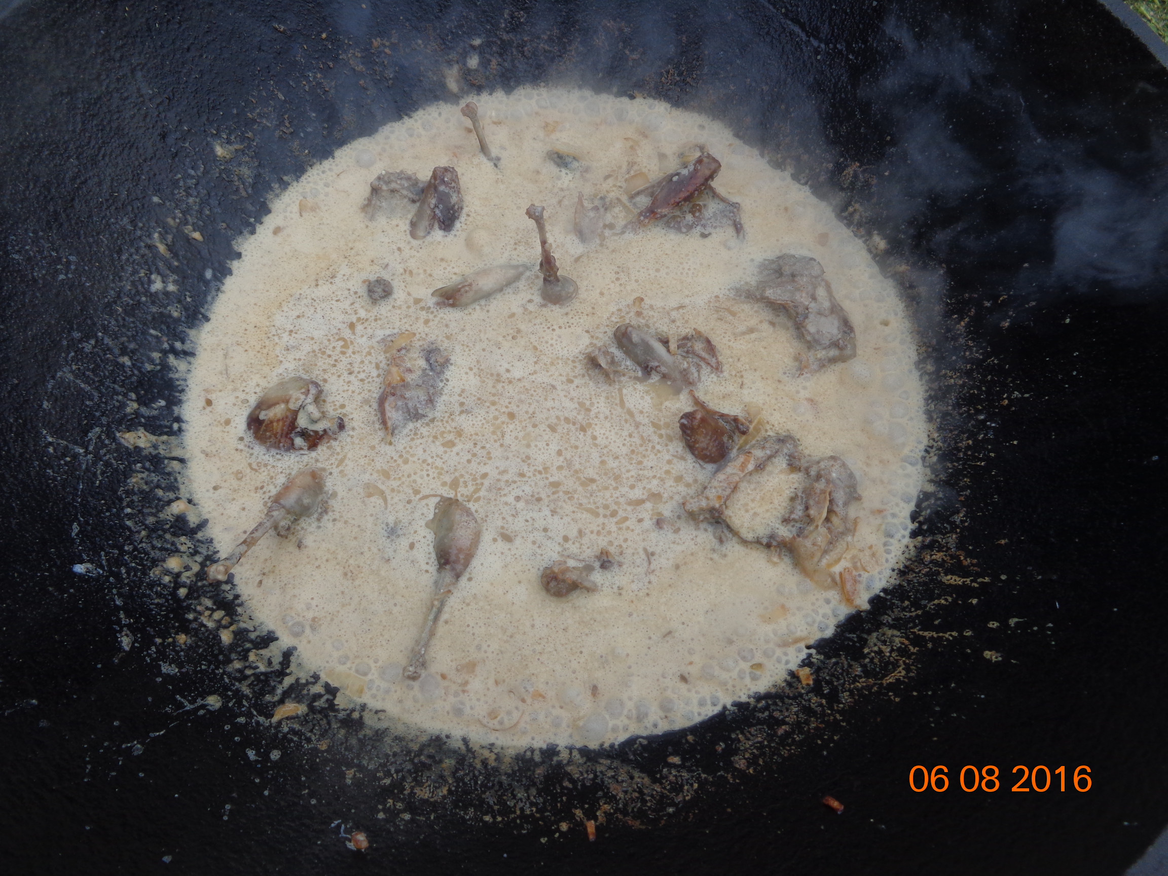 ...добавляем немного водички из колодца, солим,перчим,накрываем казан крышкой и даем ещё время потомиться,тут уж у кого насколько хватит выдержки,скажу честно,у нас на много не хватило...