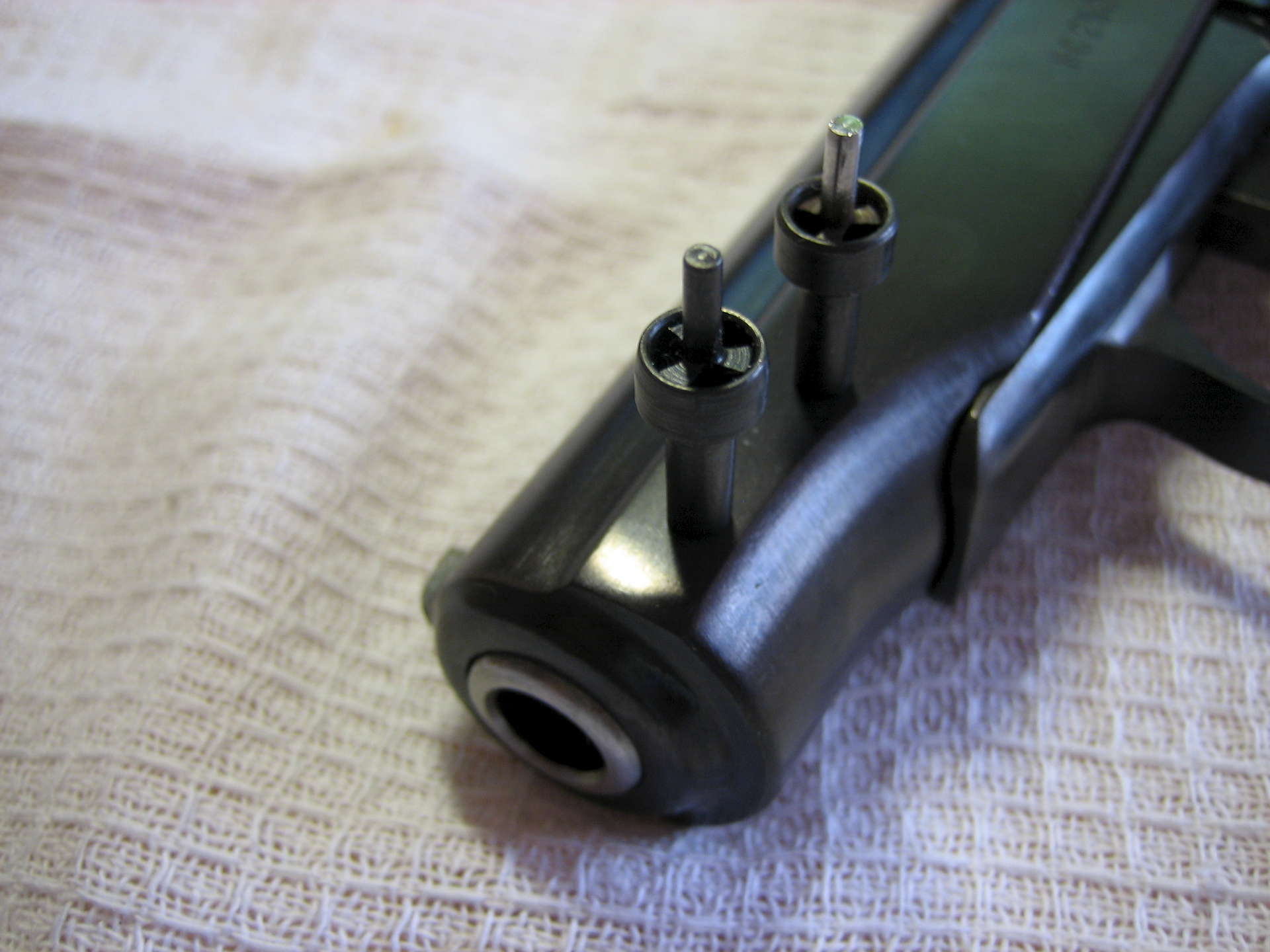 Ствол гладкий 4,44мм от Петра. С правой стороны на рамке так же заварена фрезеровка под штатный пневмомагазин..Восстановнены зацепы задвижки боевой пружины,все как у ПМа.