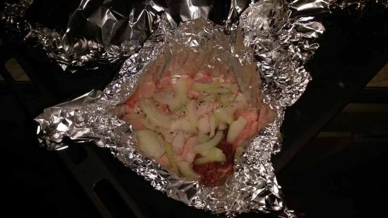 Перед окончанием приготовления, открываем верх фольги и включаем верхний тен духовки для образования золотистой корочки. Тут уж вынужден извинился, запахи и все краски не передаются.