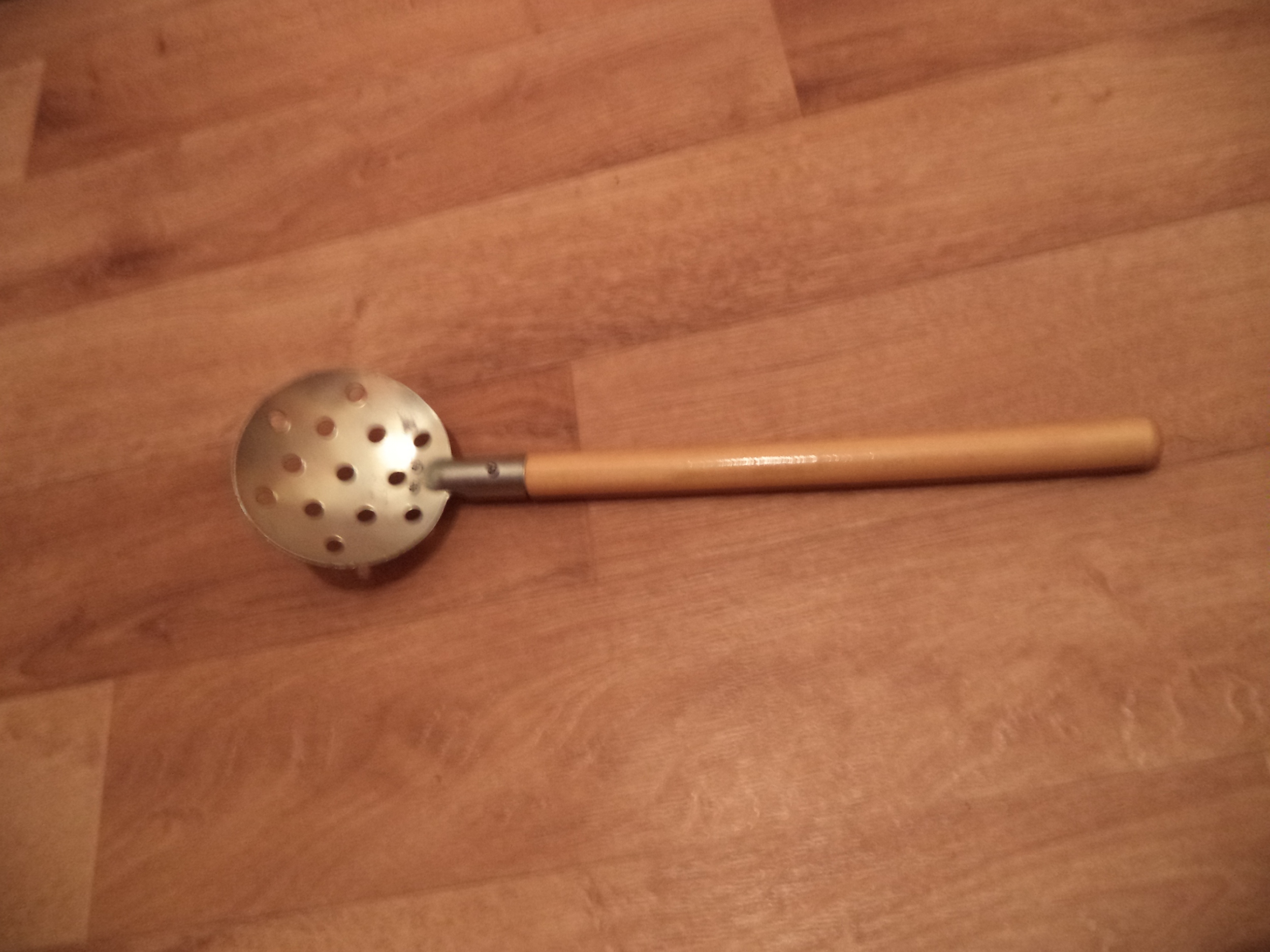 Черпак из сеточки. Хорошо очищается от льда, но очень слабенький - пришлось укреплять.