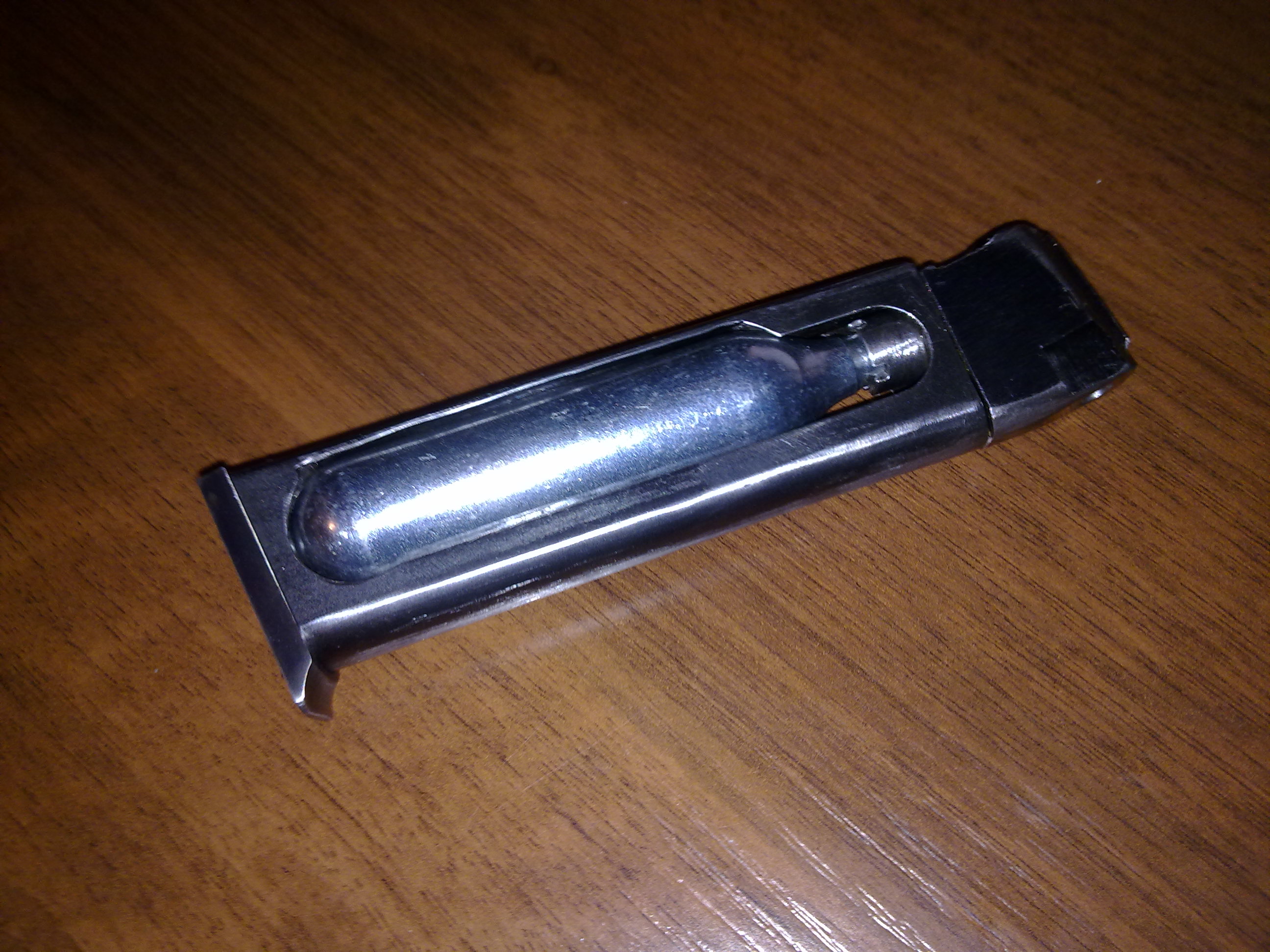 Флажок подавателя сбоку.Подача шаров герметизирована поршнем. Строго восемь шаров (свинец или стальные). Регулятор шаров сверху. Внутри доработан везде.