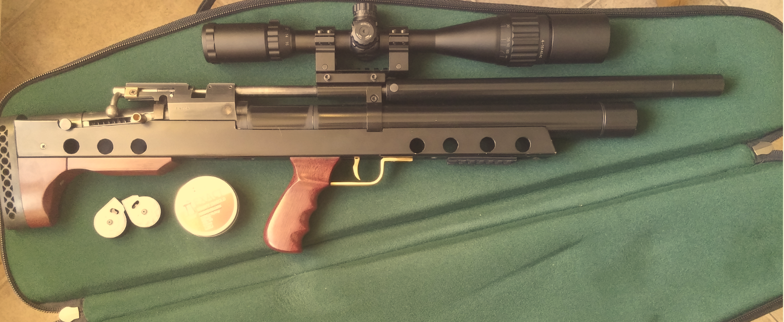 Продам комплект, во главе с булкой в стиле Ironhide 4.5 на КИТе Крюгера 2015 года. Резик 360, проставочный редуктор. Донор очень хороший ИЖик, дудка ИЖ. фрезирован под мародер, совмещенный взвод, герметизация досылателя в стволе, конический перепуск, имеется антибздун, УСМ доработан. Булка имеет возможность регулировки пружины ударника без разборки. Взвод работает четко и мягко. каробка фрезирована на станке, дудка торцована выполнены фаски. В комплекте запасной клапан, два заправочных штуцера, два барабанчика и досылатель под раздельный взвод, модер 5 стаканов + допмодер с 2мя стаканами, планка вивер под сошки, заменены все РТИ. Длинна 72 см, с доп модером +5 см. Настроена на д85, с 240 до 120 может 60 пуков JSB 0.67гр. Очень тихая.