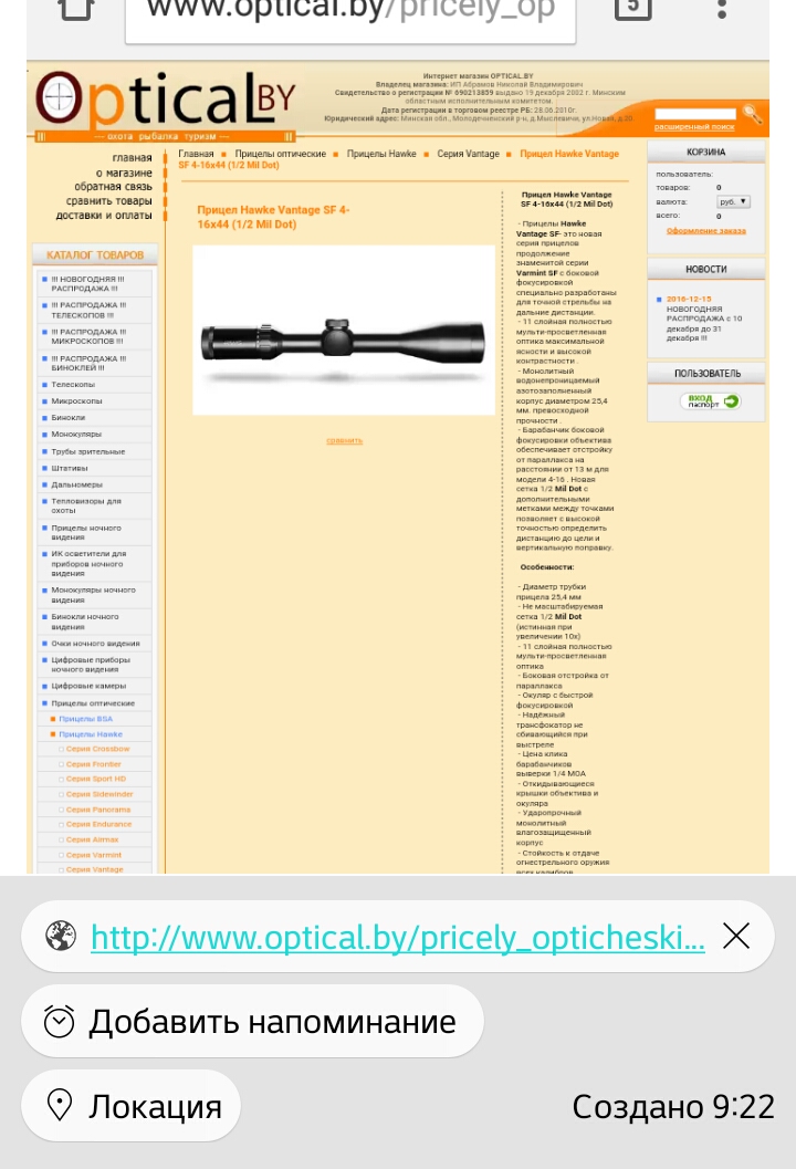 Re: Прицел Hawke Vantage SF 4-16x44 (1/2 Mil Dot)