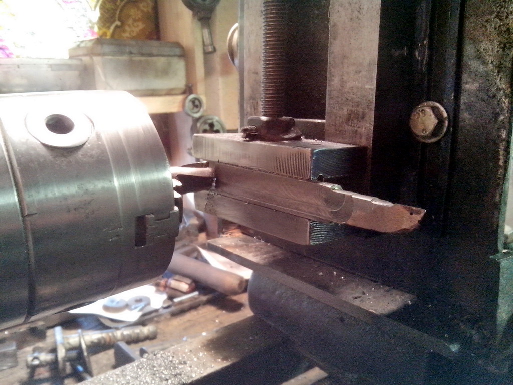 Далее выкладываю фото приставки уже с винтом вертикальной подачи тисков с заготовкой...: