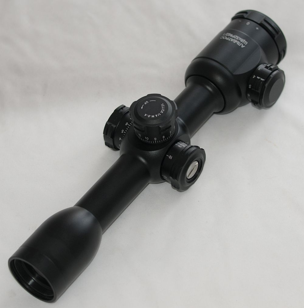 Прицельная марка: расширенный милдот с полумилами, с подсветкой точки в центре, гравирована на линзе, тонкая.