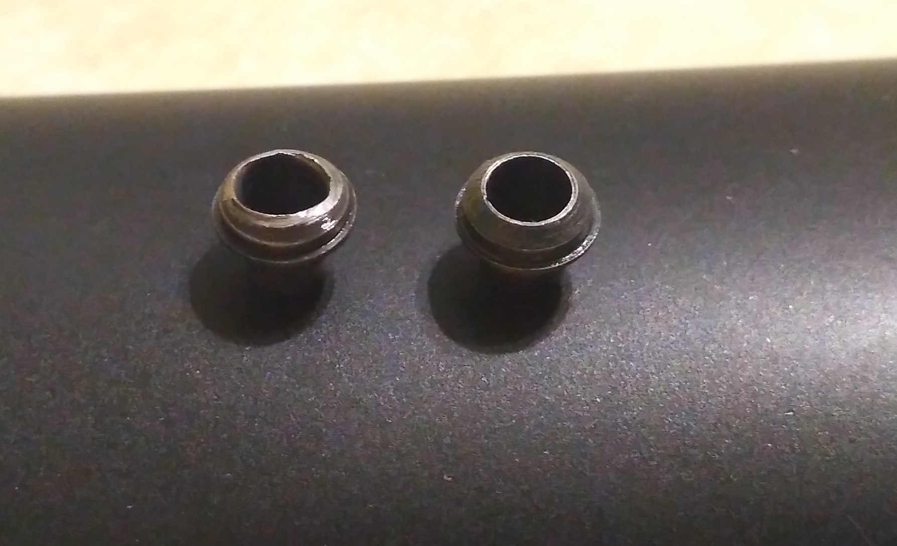 Слева втулка раздолбанная после того, как запилил клапанный узел в рыжий оригинальный магазин. Справа еще не пользованная. Надо перед ее установкой