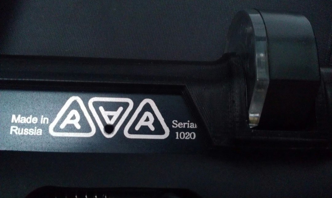 Отверстие на букве А фабричное. Под кнопочный предохранитель ( для норм ЕС), собственно для стран ЕС выпущен данный экземпляр.