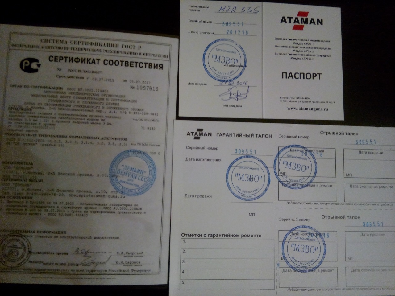 Винтовка изготовлена 20.12.2016, на следующий день и куплена
