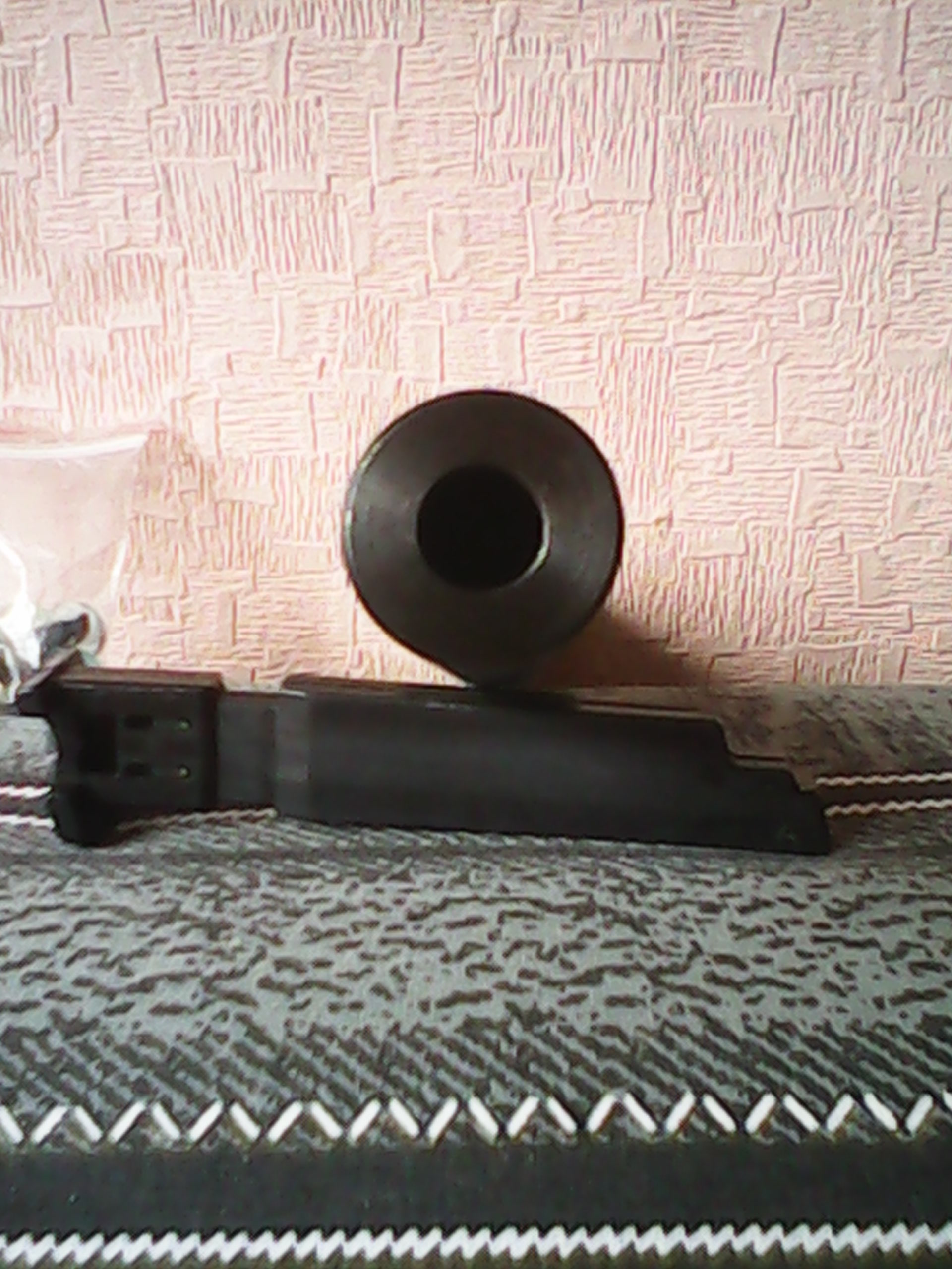 фальшмодер(диаметр внешний 31мм,общая длинна 180мм,с одной стороны отверстие 13мм,с другой отверстие в резьбой 9мм,левая.Внутри пустой,неразборный.Идет в комплекте с длинным стволом к дрозду - 10руб.