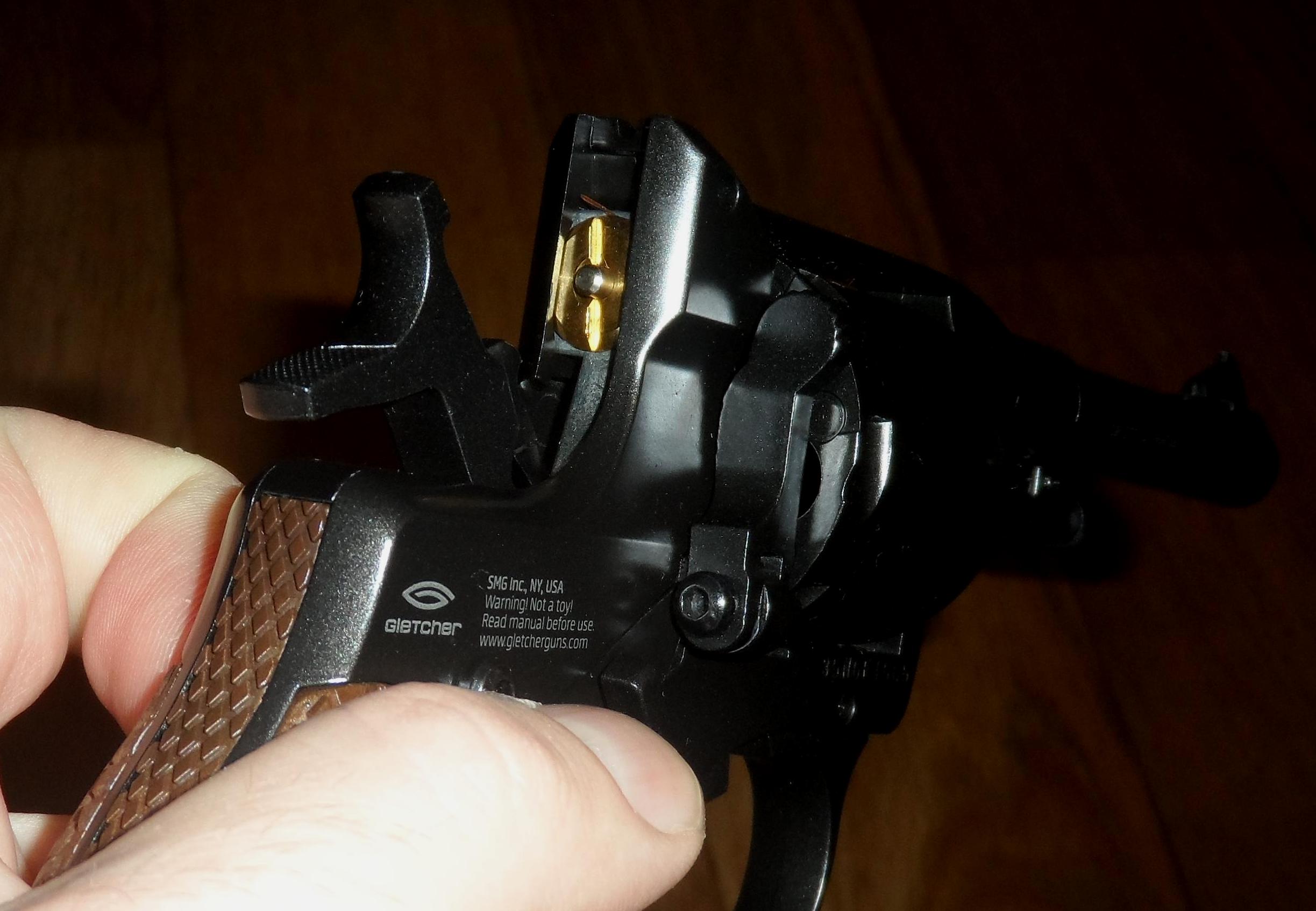 Конечно, Gletcher NGT F Black особо хорошо восприняли любители классики, у них он вызвал просто бурю эмоций. Сразу заметно полное соответствие прототипу по размеру и массе. Всё сделано в абсолютном соответствии с прототипом. При заряде можно полностью почувствовать атмосферу того времени, поскольку в револьвере Gletcher Наган Black применяются фальшпатроны (вставляющиеся в барабан). Эта модель пневматического оружия оборудована ударно-спусковым механизмом с двойным действием, потому стрелять из него можно с предварительным взведением курка и самовзводом. На рамке справа есть флажковый предохранитель, необходимый для техники безопасности.