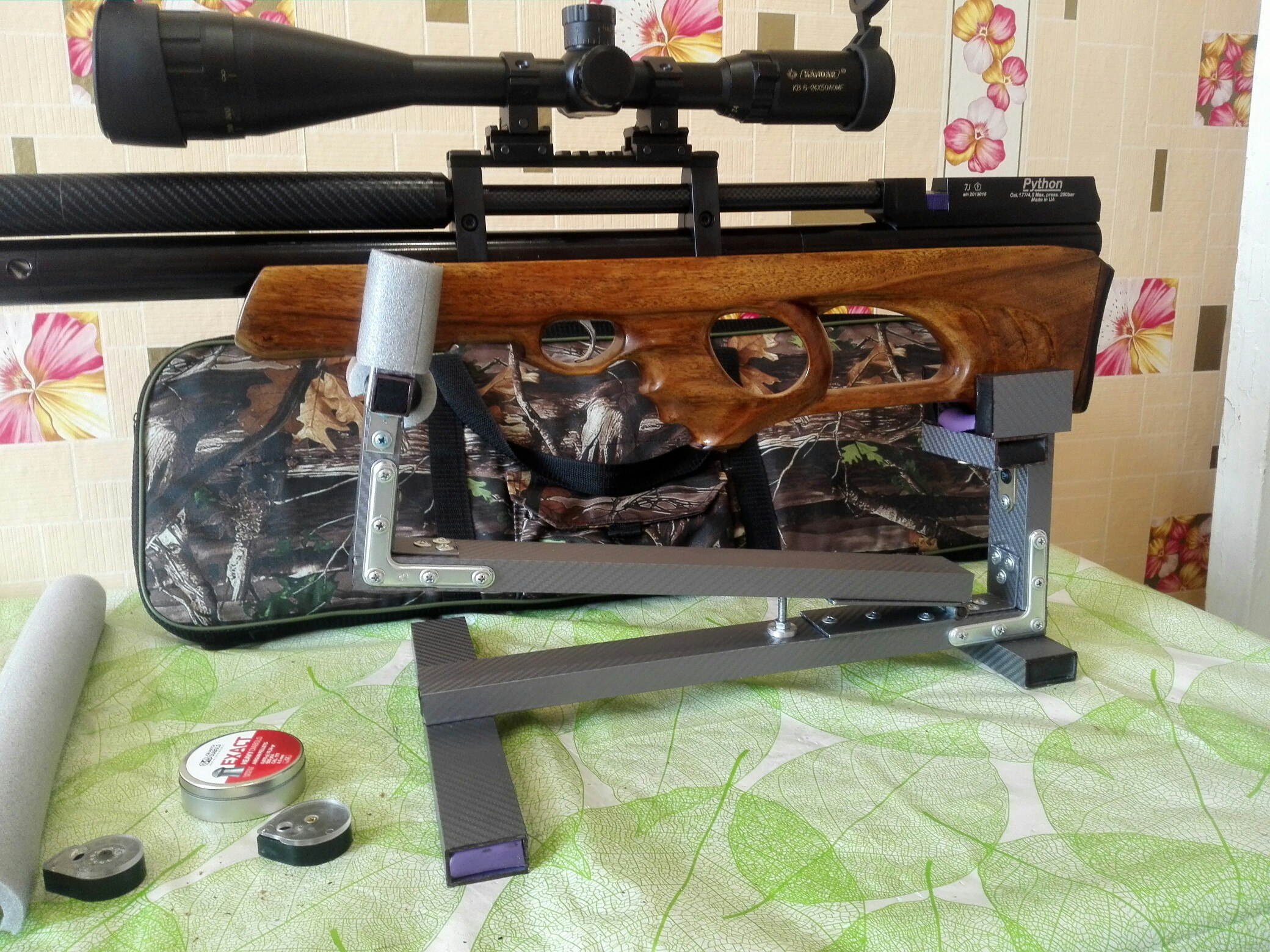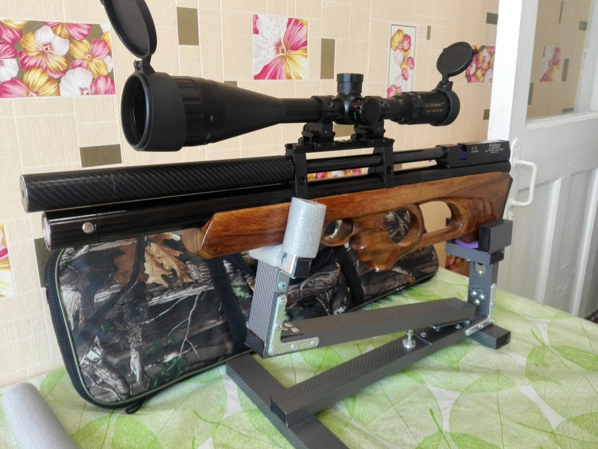Продам пневматическую винтовку Python, калибр 4.5, дудка лв, редуктор, модер+допмодер- (тока пук), с 250ти до 120ти примерно 70+шлепков!