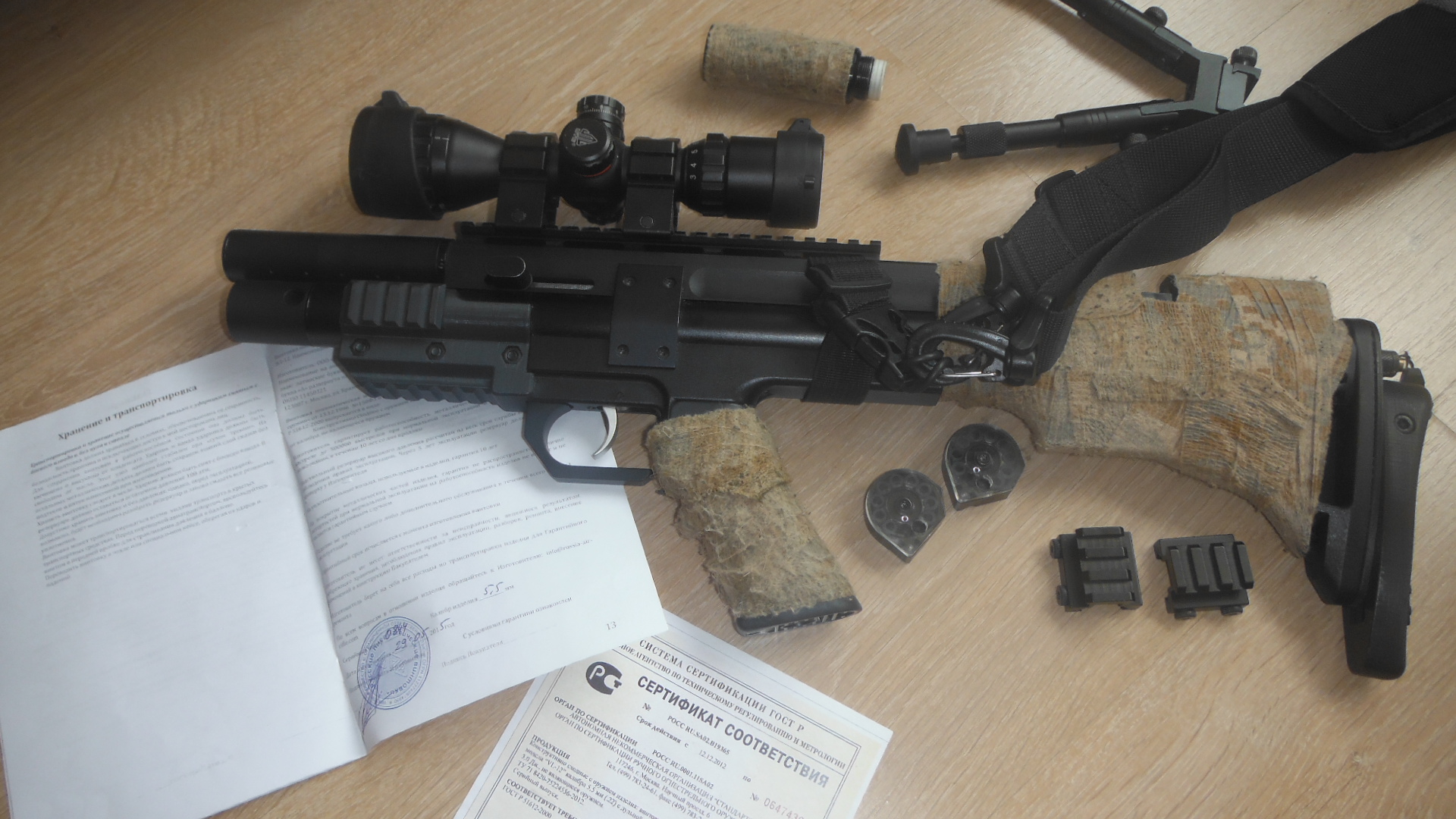 настроена д40мысов жзб 1.175 4 барабана.Из допов прилагаю.Прицел липа миник 3 на9 ,затыльник регулируемый,цевье с вивер отДимитса,антибздун,сошки,ремень,повышайки для прицела под вивер,доп модер от биктрека.