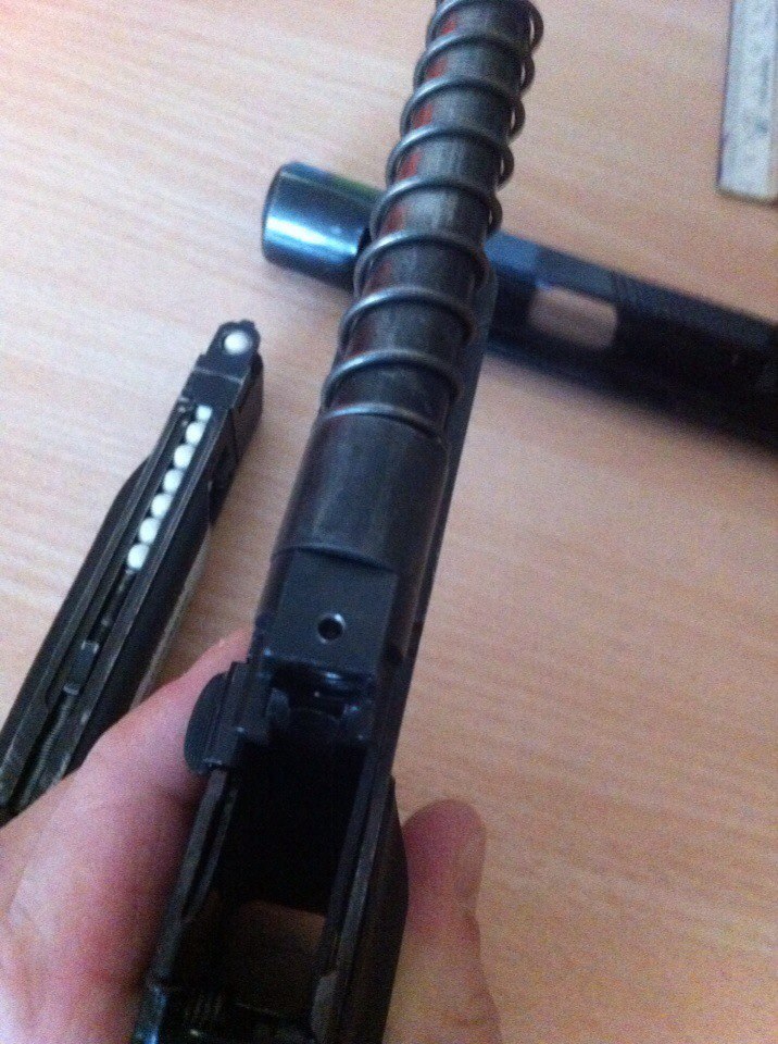 собственно делал для страйкбола или просто развлекательной стрельбы( слабым шаром больше выстрелов ) 654к стволик от страйкбольного привода магазин рассверлен под 6мм пластиковые шары. скорость ослабил точности нет.ствол можно выкручивать держатель пружины заштифтован -собственно будет интересен тем кто захочет погулять с ним на ввд