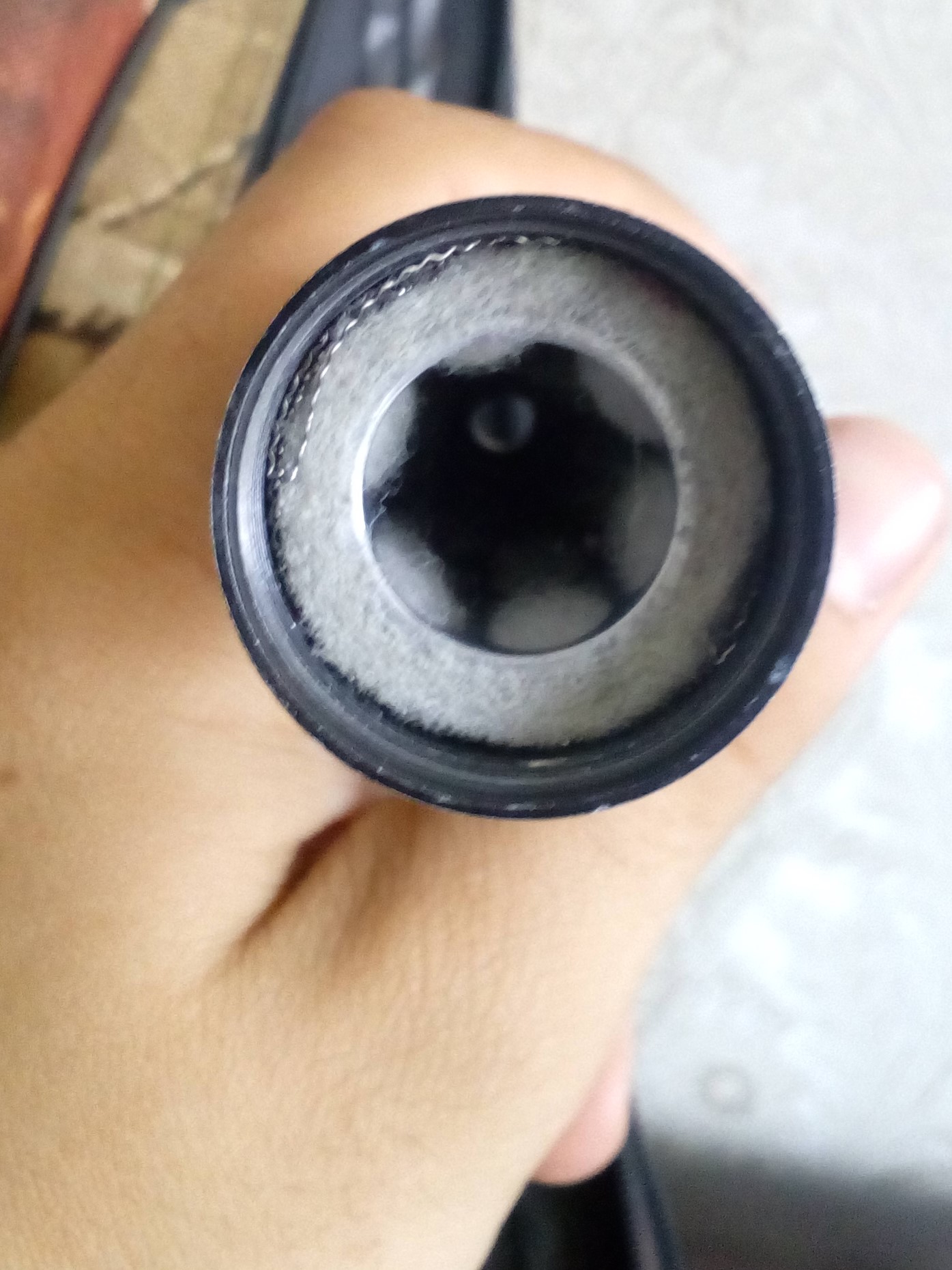 Хозяин заглядывал, может даже сфотографировать, ничего конструктивно напоминающего отличие от "бигуди" не увидел, модератр разделён на 2 одинаковые камеры перегородкой(шайба с отверстием размером с диаметром пульки), читал мнение, что и фальшствол также участвует в процессе гашения звука.
