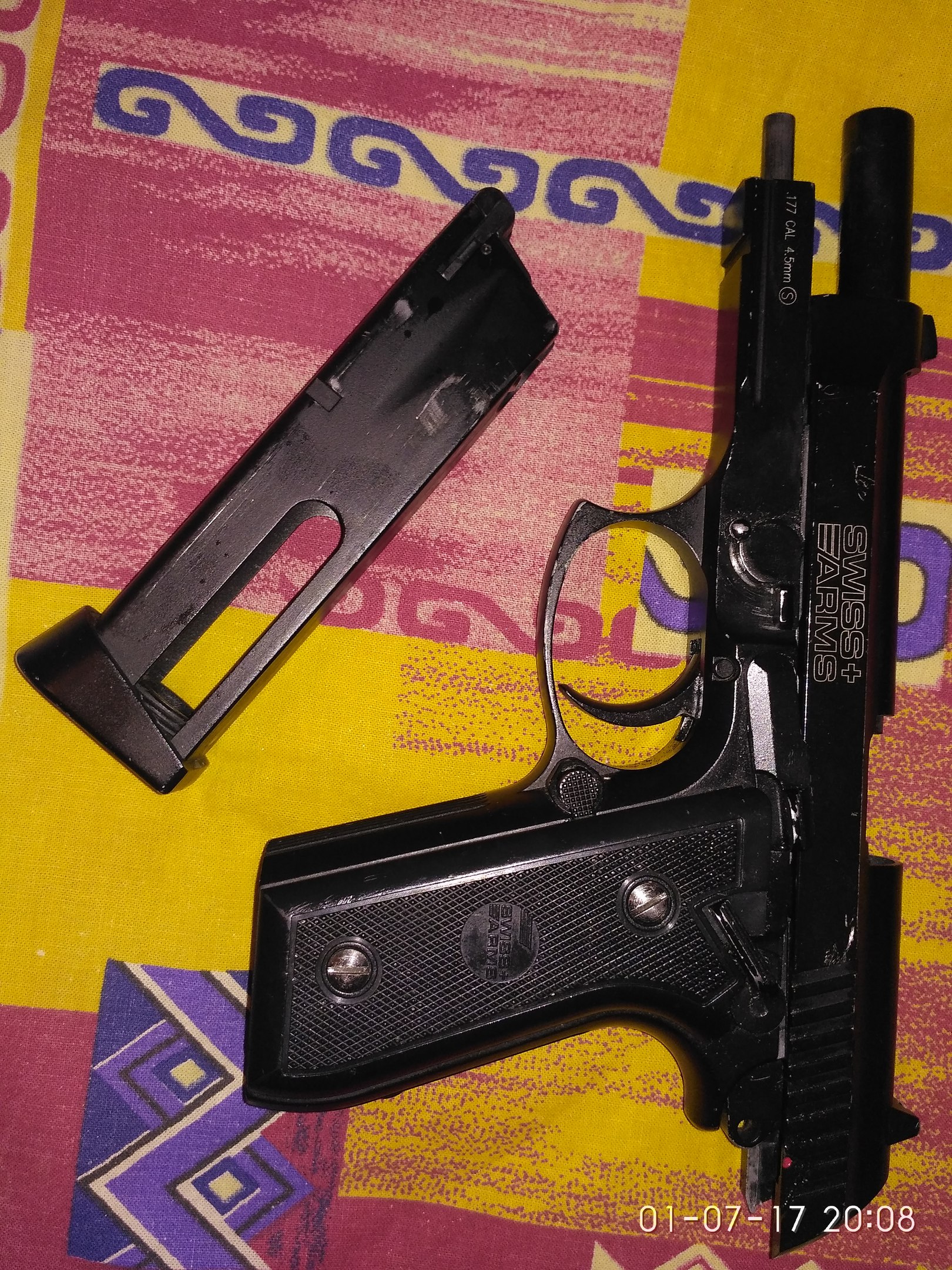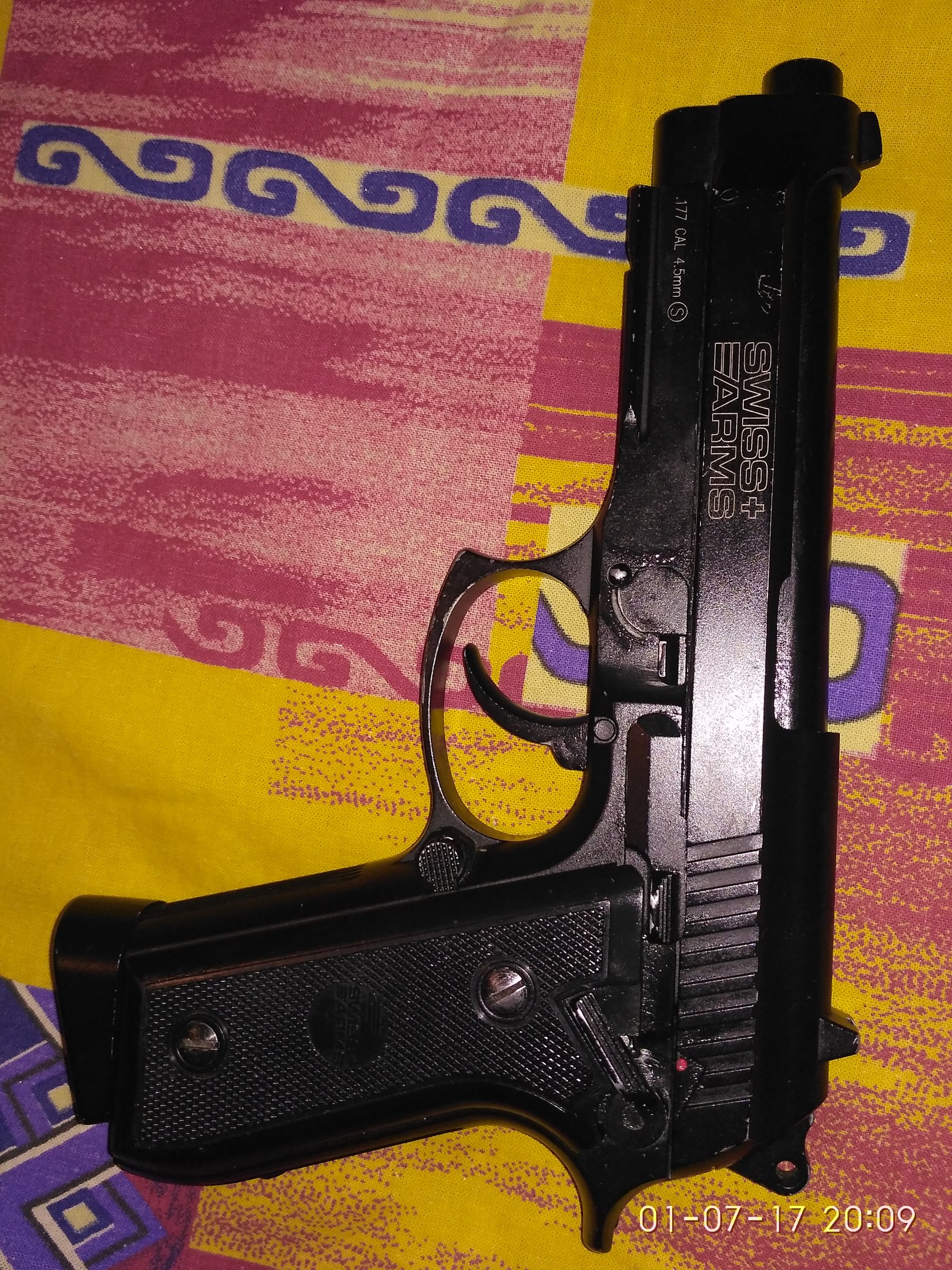 Продам газобалонный пневматический пистолет Beretta 92 с системой блоубэк от Swiss Arms, калибр 4.5 мм стальной шарик.