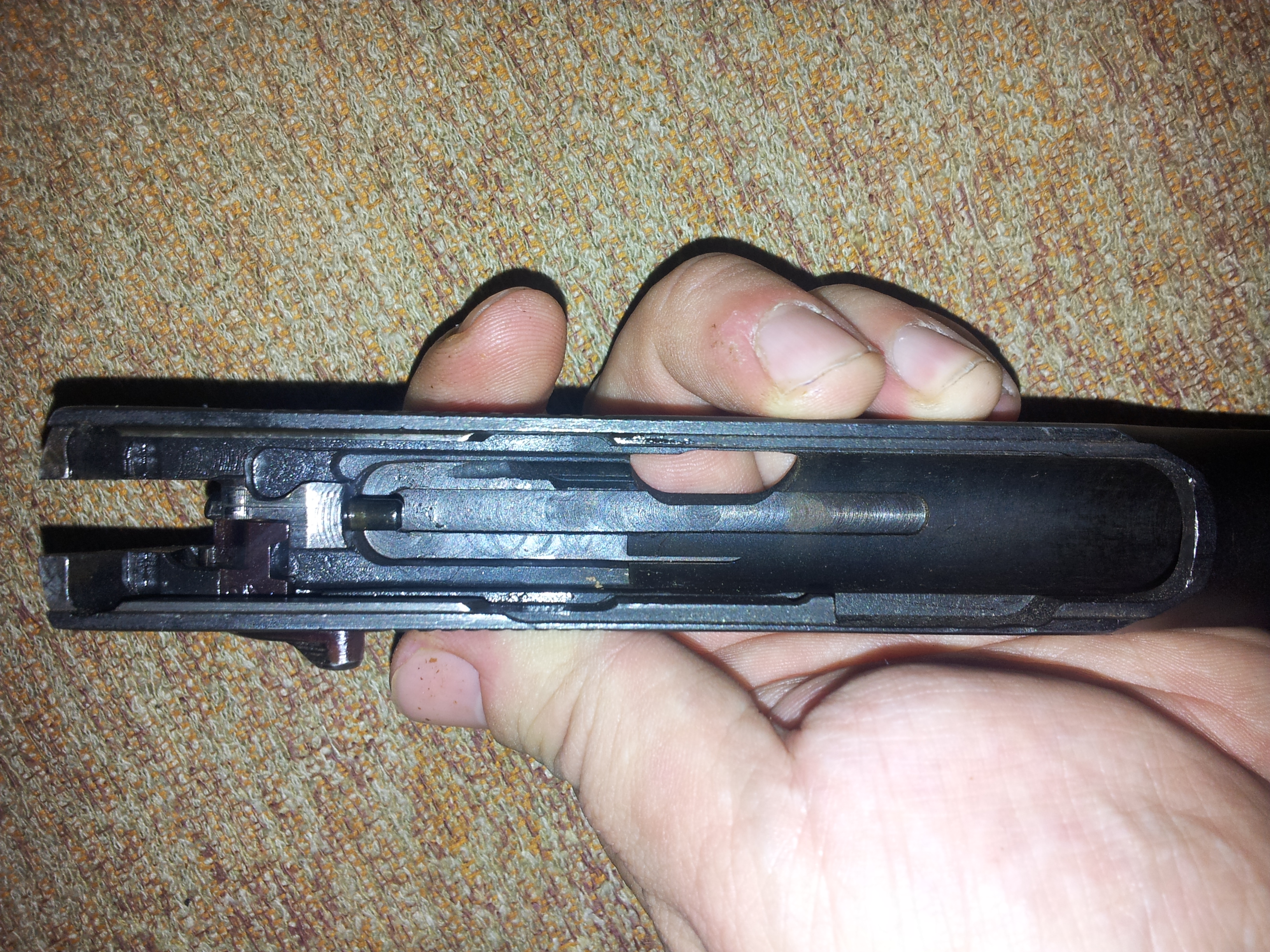 Вырез под стволом,и заднюю часть рамки под пружиной...))