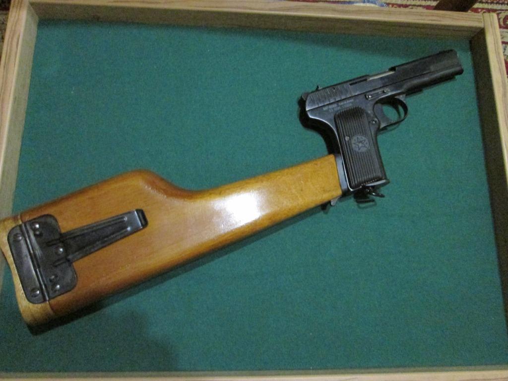 Для перфекционистов могу предложить вместо невзрачного пластикового кейсика шикарнейший приклад-кабуру от не менее легендарного "Стечкина". ТТ помещается в него идеально. Естественно, что крепление на рукоятке пистолета отсутствует, но я дам в придачу весь комплект для крепления "ласточкиного хвоста" на ТТ. Цена приклада обсуждаема отдельно.