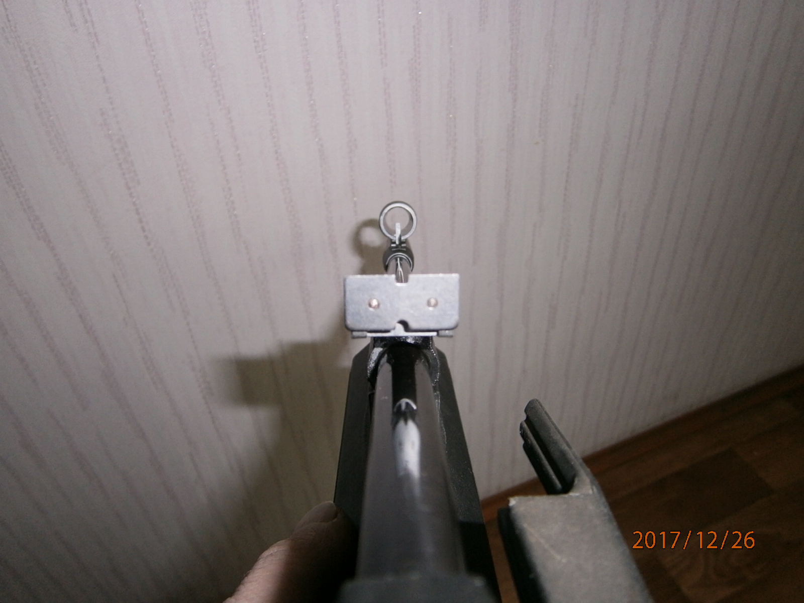 На винтовочном стволе ижевского производства на конце ствола есть нарезанная резьба такая же-М12х1. Так что ничего нарезать не надо-всё готово!!!Она нарезается для пластиковой гайки. На ствол одевается пластиковый намушник,за резьбой на стволе есть мелкие шлицы,в намушнике такие же,центруется мушка по вертикали на этих шлицах(точно по вертикали),до полной посадки садится на шлицы намушник,в него одев на ствол вставляется пеньковая мушка и закручивается указанная первой фигурная гайка!