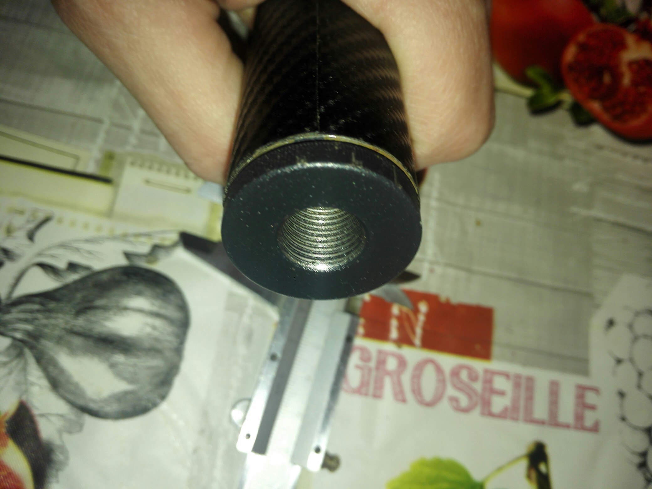 модер недоделанный, труба 30 стальная, длина 18см, затянут пленкой аля карбон. пробки на резьбе, задняя пробка с резьбой на ствол, + 5 шайб из фторопласта - 15р