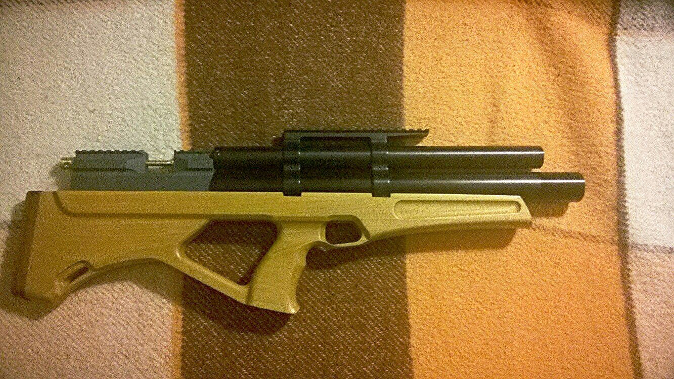 Электроударник - не знаю от кого, отдали разряженую батарею почти без зарядки, поэтому выстрел подготавливает секунд 20-30. Нужна новая батарея и зарядное. Насколько понял, есть предохранитель и настройка по мощности выстрела (30 миганий светодиода). Не знаю что булка может, в тире не был, на кучу ничего не отстреливал и скорости не знаю. Редуктор есть, только не знаю на сколько атмосфер.