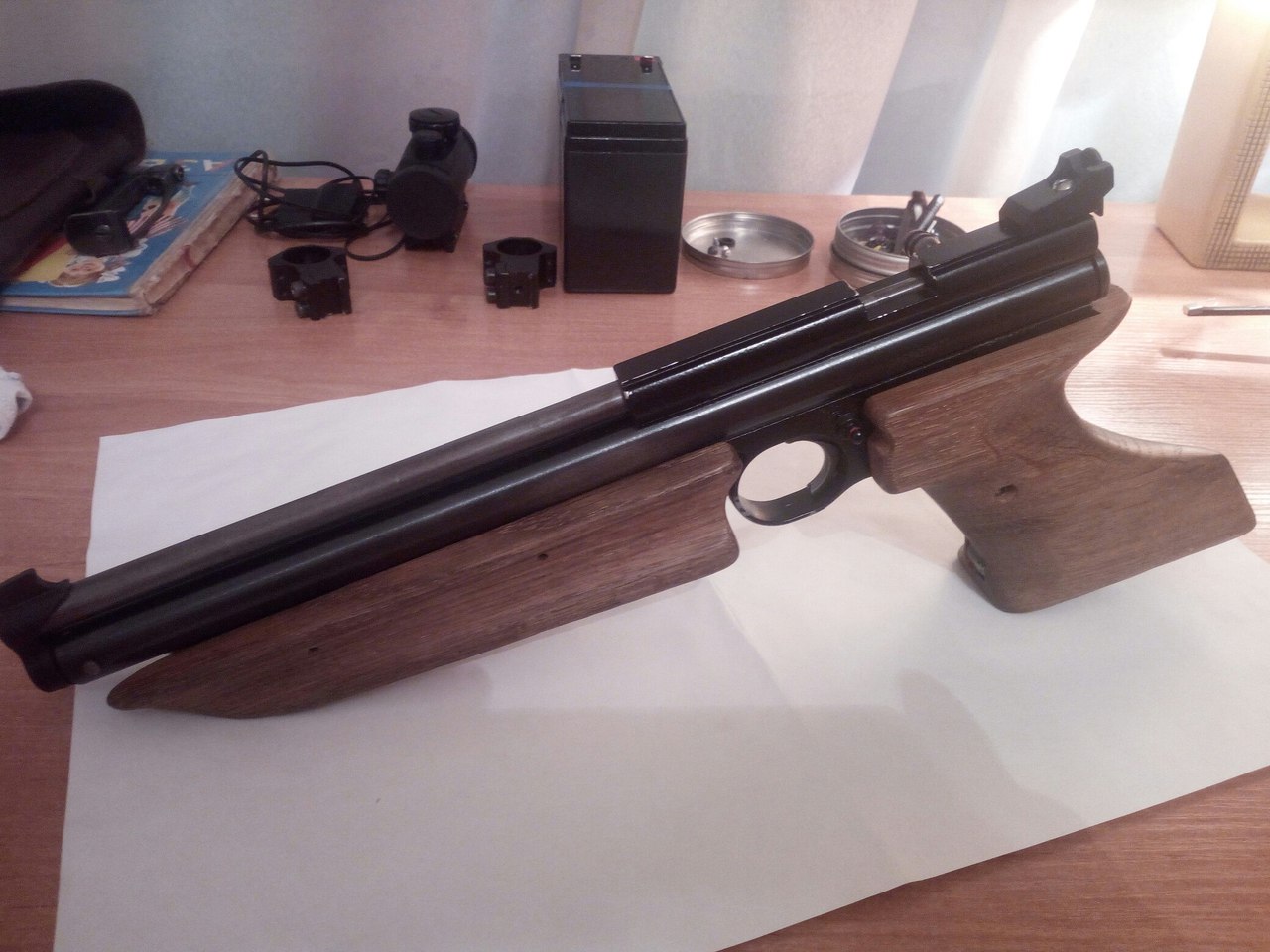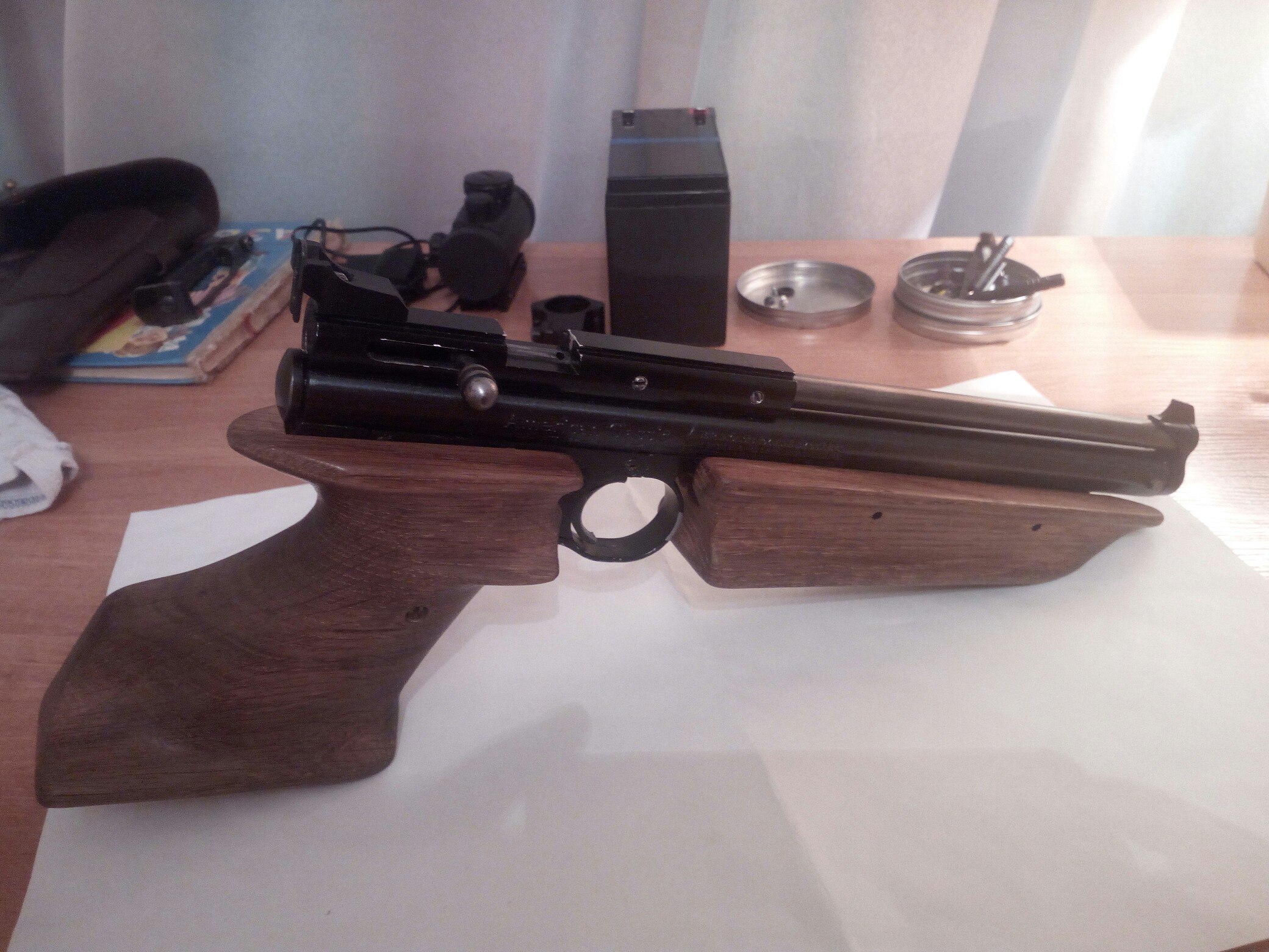 сама головка поршня полностью из алюминия.очень точно подогнанано и маленькое фторопластовое колечко.качал 5 лет и все как новое.раньше такого не видел.внукам еще хватит.скорости приличные.доработан накопитель.мертвого обьема практически нет.стволик родной.но по кучности хороший.оптимально 10 качков 20-25метров.максимум 15 качков.потом воздух остается ну и больший разброс пуль.