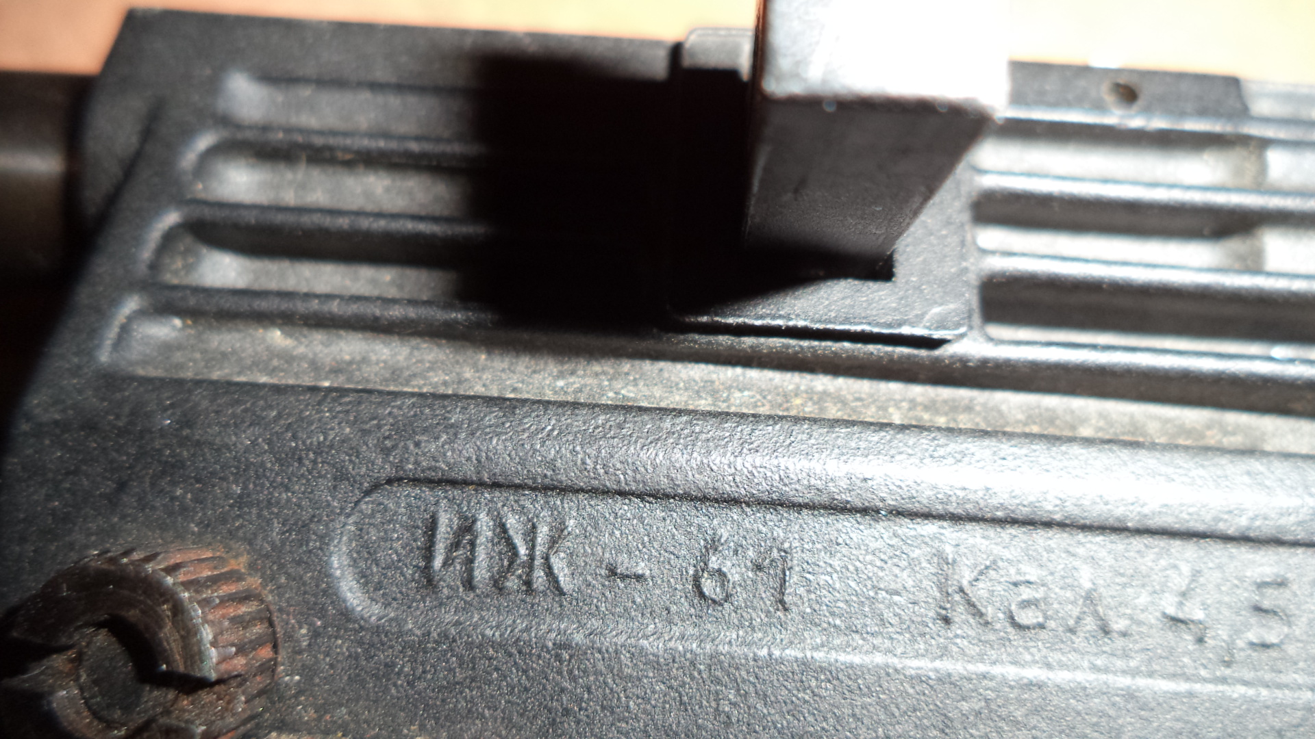 НО! Пластиковая коробка с клеймом "ИЖ-61 кал.4,5мм",задник-пластик тоже,а УСМ полностью металлический с возможностью не только регулировки спуска,но и высоты спускового крючка. Я такие только на железных 60-х более ранних выпусков видел.Ствол в коробку на резьбу вкручивался,пирамидка с целиком были уже тоже пластиковые.