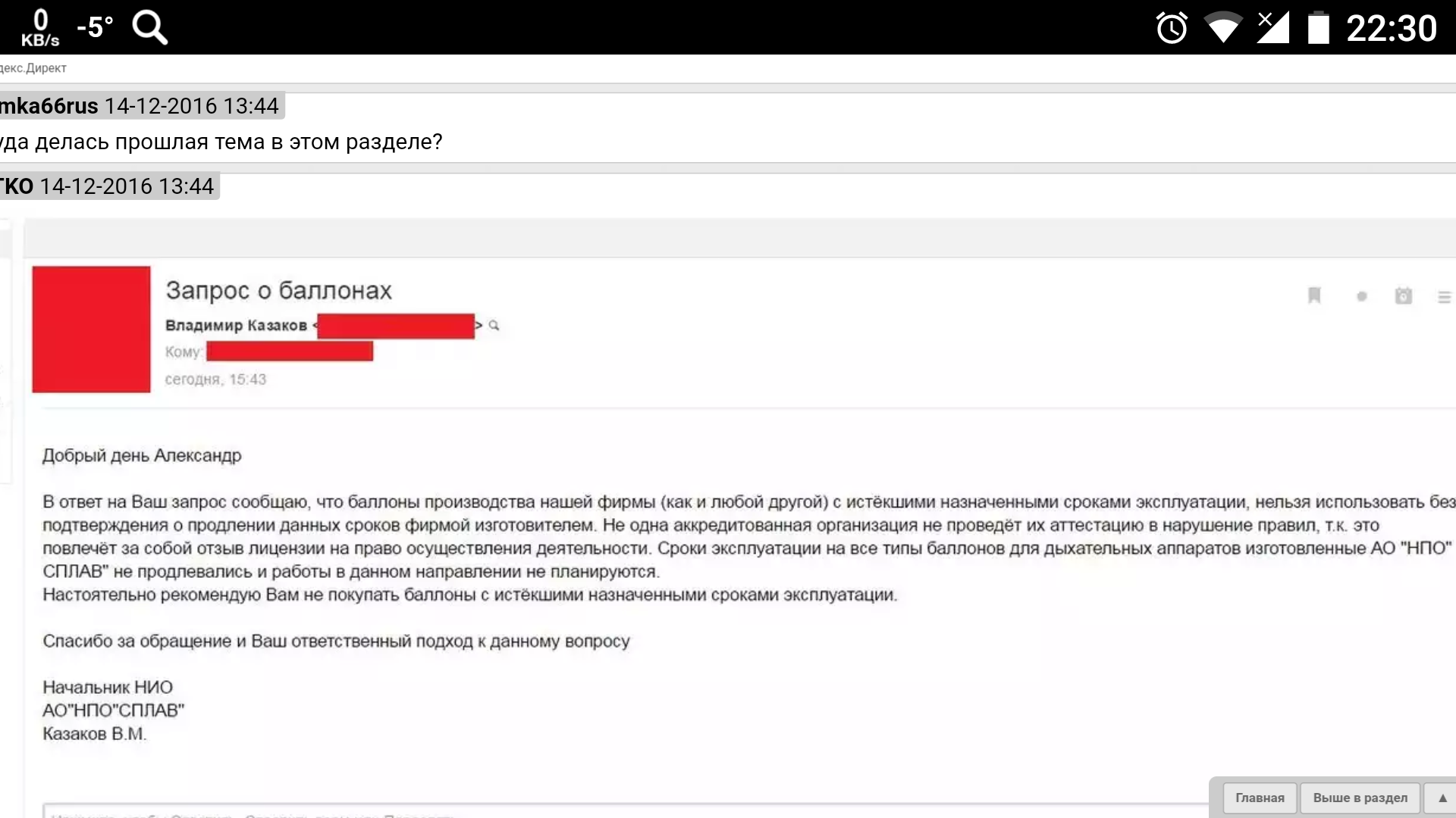 Как по мне, данный официальный ответ - всего лишь страховка/отписка НПО "Сплав" от возможного лишения лицензии на производство, в котором указано, что лично они не занимались испытанием/опрессовкой своих баллонов для дальнейшего использования после срока истёкшего. И они не несут за дальнейшее использование ответственности. И это естественно! Ведь не будут миллионы пользователей присылать каждый свой баллон им на опрессовку. А то что проверяют баллоны, и продлевают срок службы - это факт. И то что пожарники/мчсники пользуются этими баллонами тоже факт. И то что у них это любимые по надёжности баллоны тоже факт. :uch_tiv: