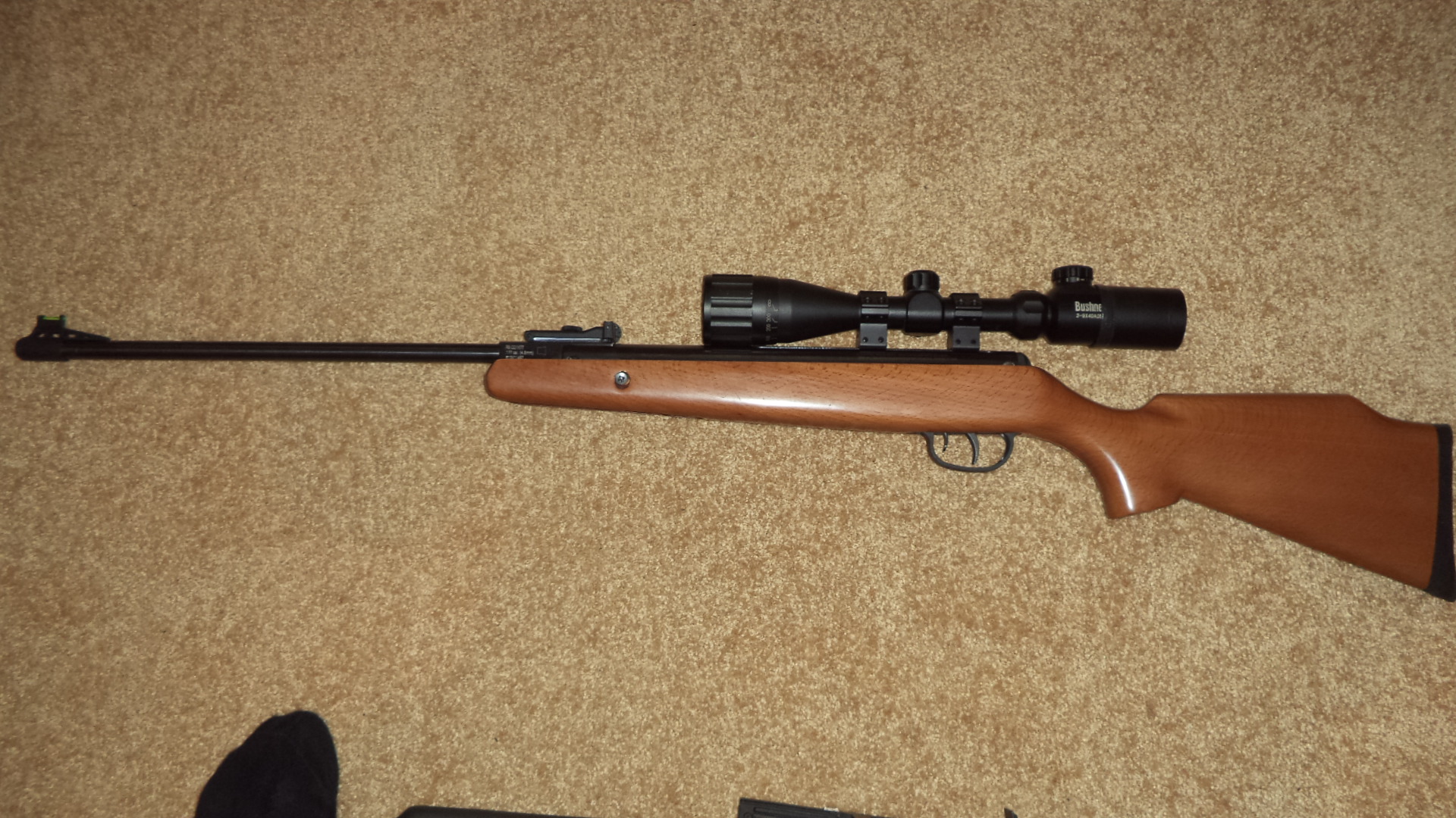 Состояние хорошее, ложа дерево, плюс газовая пружина (обслуживаемая). Ствол ровный с хорошими четкими нарезами. Прицел БУШНЕЛ 3-9 на40 AOEG сетка тонкая (милдот), пристрелян на 25м. Скорости JSB 0.547 **40 мс, H&N ДИАБОЛО СПОРТ 0.540 **50мс.Винтовка ухожена смазана.Открытые прицельные не сняты прицелу не мешают. Цена 320р, при самовывозе небольшой торг, через почту без торга.Находится в Сморгонь. Звоните 80336863322МТС.