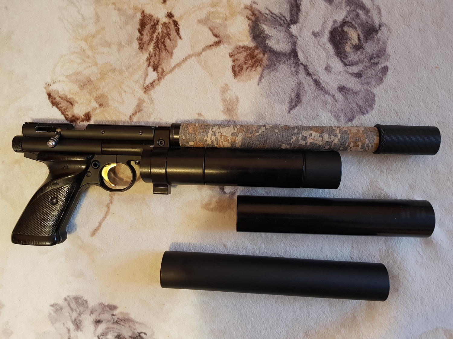 Однозарядная крыска, не более 3 джоулей, после покупки был разобран и осмотрен, где надо подмазан и почищен. Досылатель регулируемый. Редуктор настроен на 100 очков, натекания нету, с 200 до 100 на трубе 100 мм порядка 20 пуков граммом при скорости 20,3 +- 1 мыс. С допмодером очень тихая, без допика длинна песта составляет 39 см. В придачу 2-е трубы 200 мм и 240 мм. Штуцер на резьбе. УСМ по боливару мягкий и прогнозируемый. Дудка Ф11, по словам бывшего владельца LW 200мм. На кучу не стрелял, погода не позволяет. Могу доукомплектовать насосом Бендж. +140.