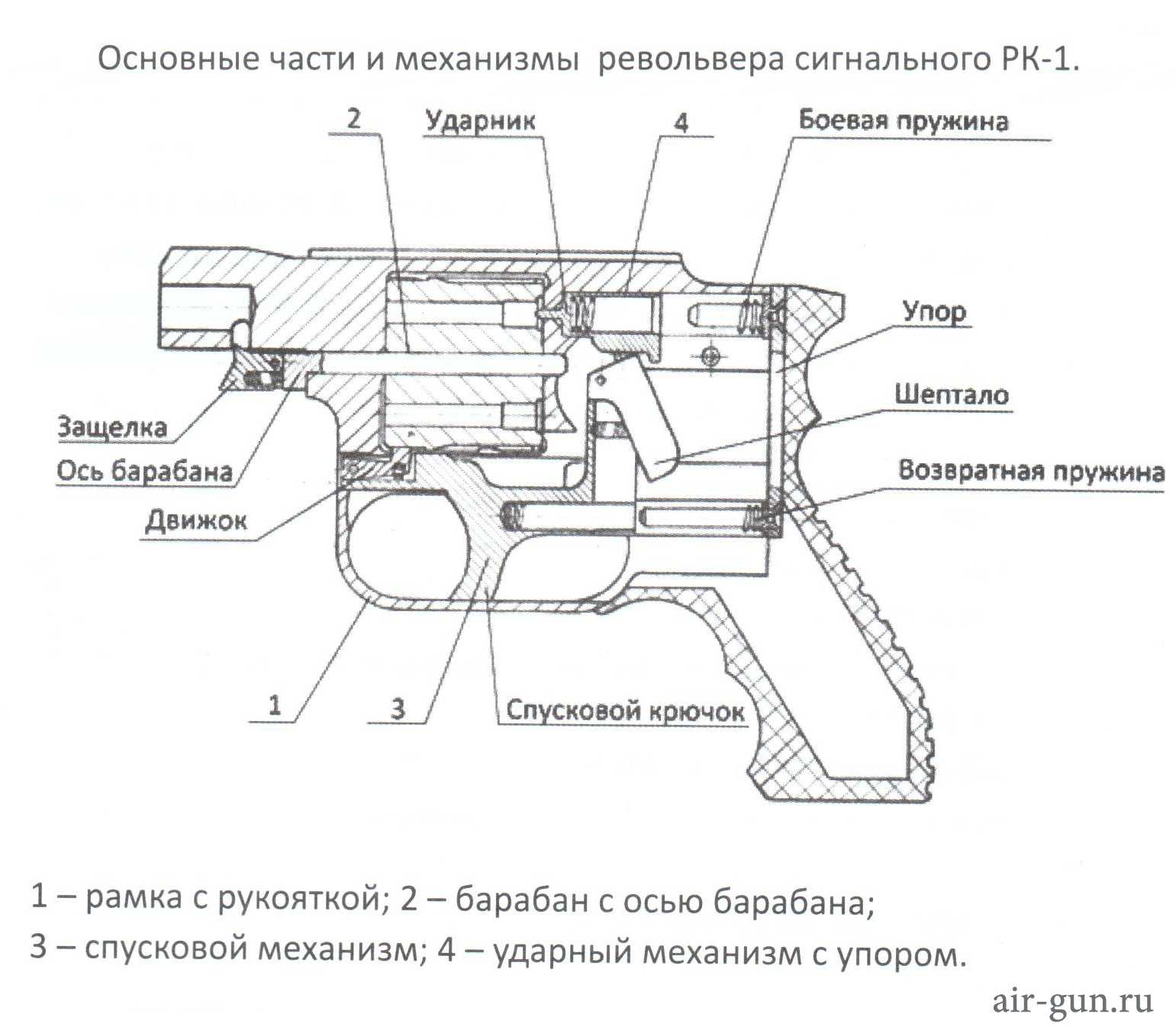 Сигнальный пистолет Smersh РК 1 (пластик) – это сигнальный револьвер от довольно известного в мире производителя пневматики Smersh. Данный револьвер Смерш РК 1 был анонсирован на выставке «arms & hunting» в 2012 году. Пистолет Смерш рк 1 капсюлями-воспламенителями «жевело», которые размещаются в барабане на 8 капсюлей. Выстрелы производятся только самовзводом. Проворот барабана происходит ползунковой системой. Выброс газов производится не через ствол, а через отверстия сбоку от барабана. Чтобы извлечь барабан необходимо вынуть его ось. Предохранитель отсутствует. При выстреле происходит ощутимый хлопок, из барабана выходит немного огня и довольно много дыма. Револьвер smersh рк-1 нужно регулярно чистить во избежание осечек и поломок. Материал изготовления револьвера – сплав ЦАМ (цинк-алюминий-магний), рукоятка изготавливается из оружейного пластика. В комплекте сигнального пистолета Smersh PK-1 (пластик) идет сам сигнальный револьвер и его паспорт.