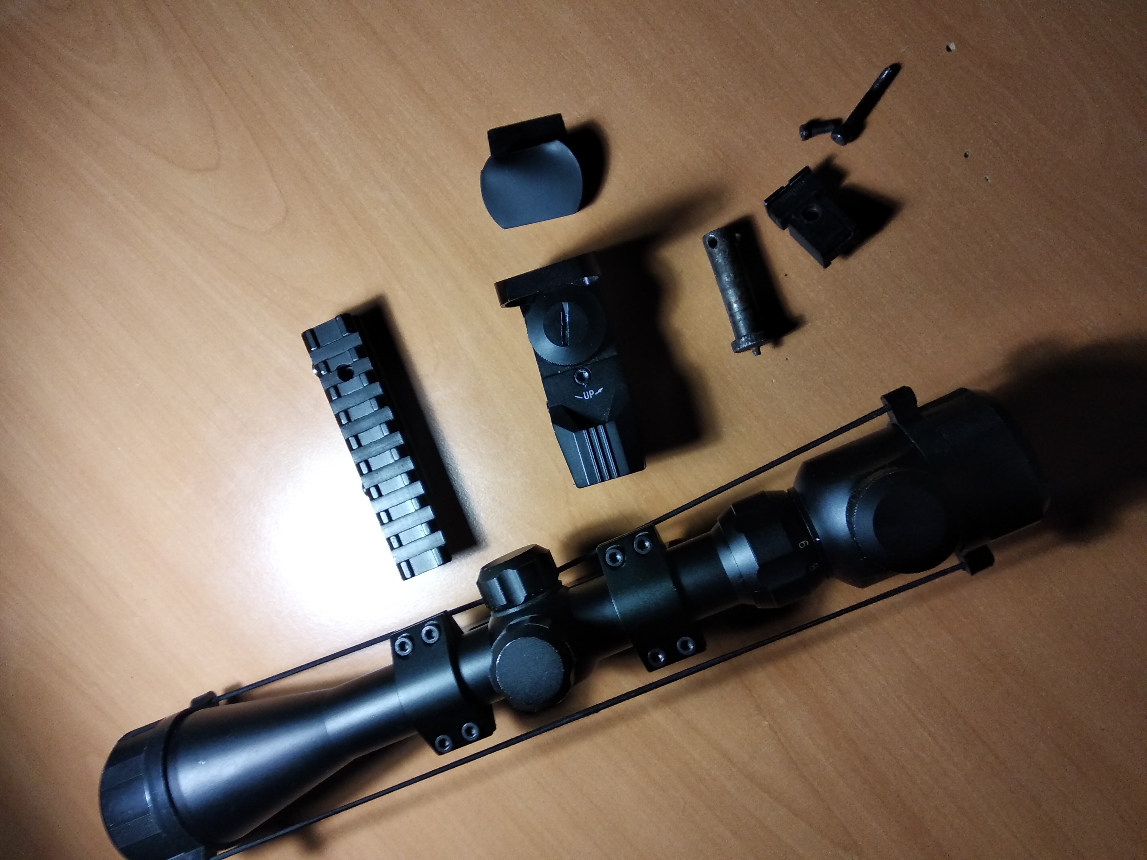 Такие вот пневмоостатки: 1)Прицел zos 3-9*40 с подсветкой сетки и моноблоком на ласту, 70р (моноблок отдельно 20р, а прицел отдельно 60р). Стоял немного на мурке. Косяков не заметил.